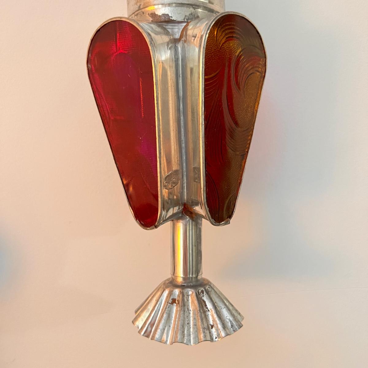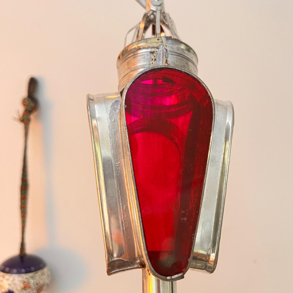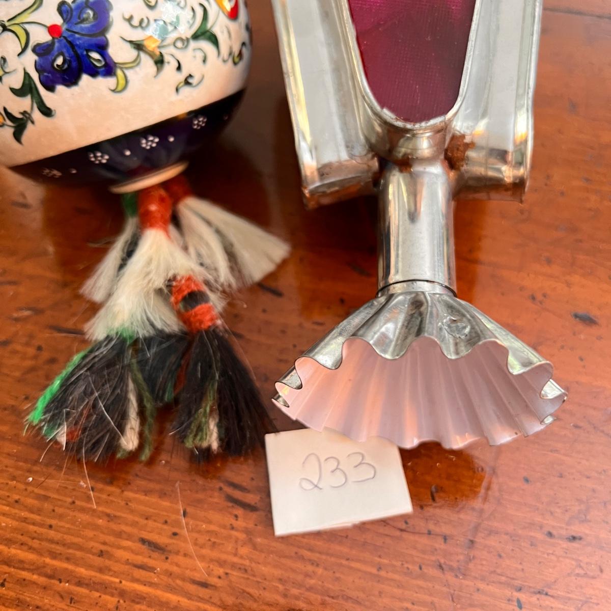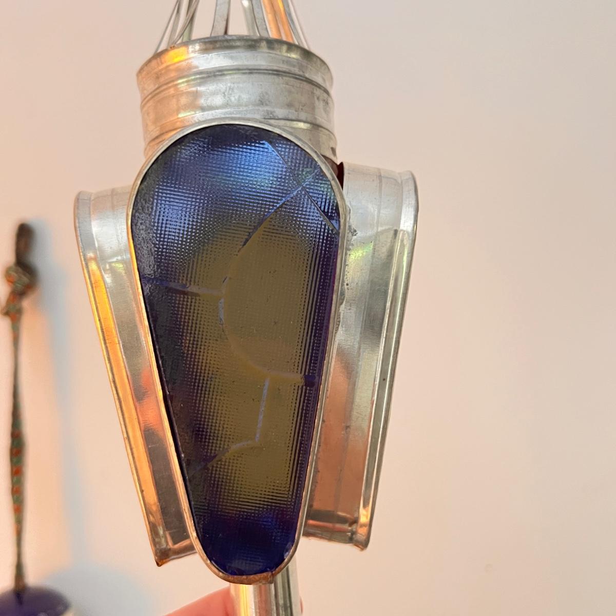 Traditional turkish ceramic ornament usually hung from trees for luck. Tin with multi colored glass panes. The bottom comes off to assumingly insert a candle.