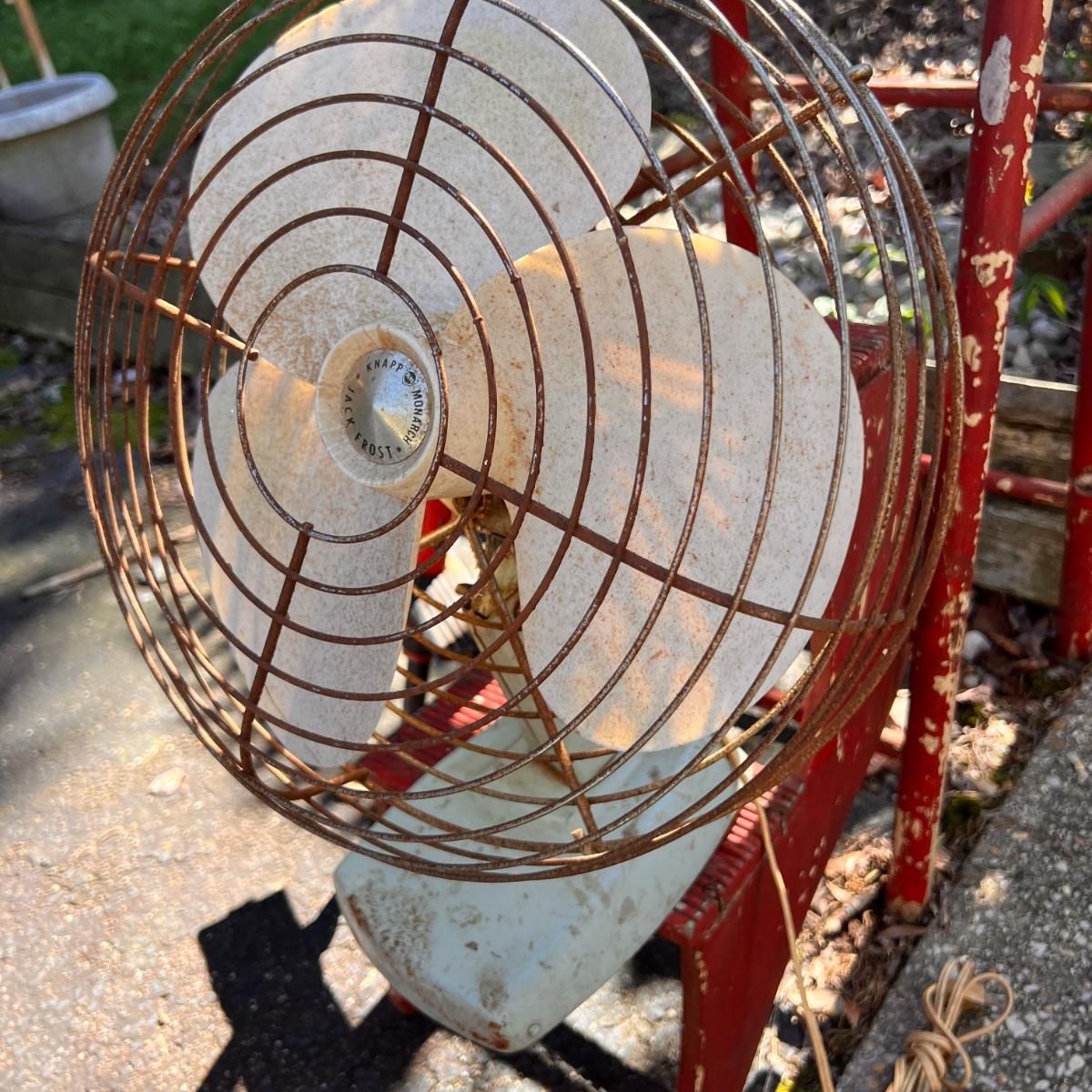 Antique Vintage Lot - Pogo Stick, 2 Metal Fans, Rustic Folding Stool