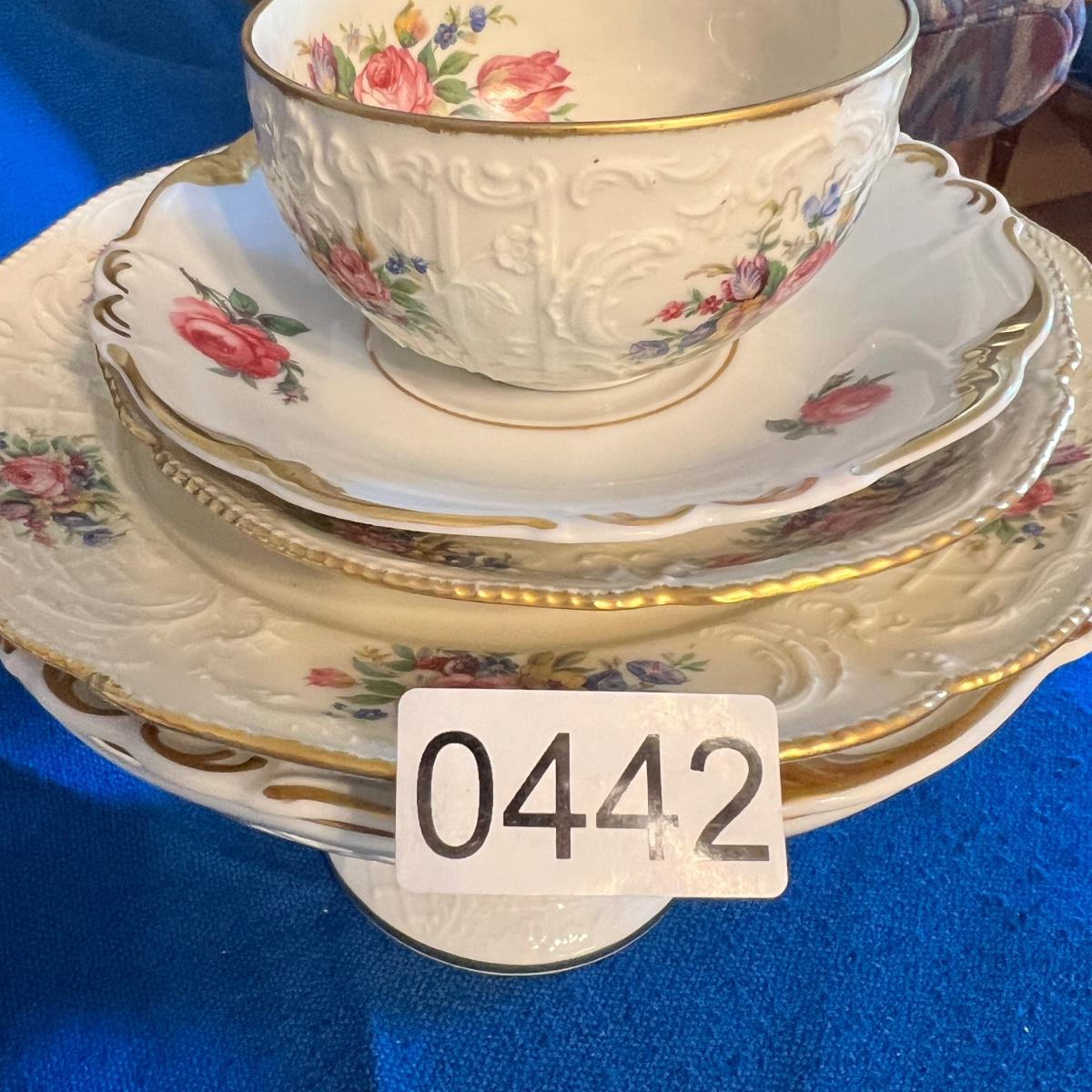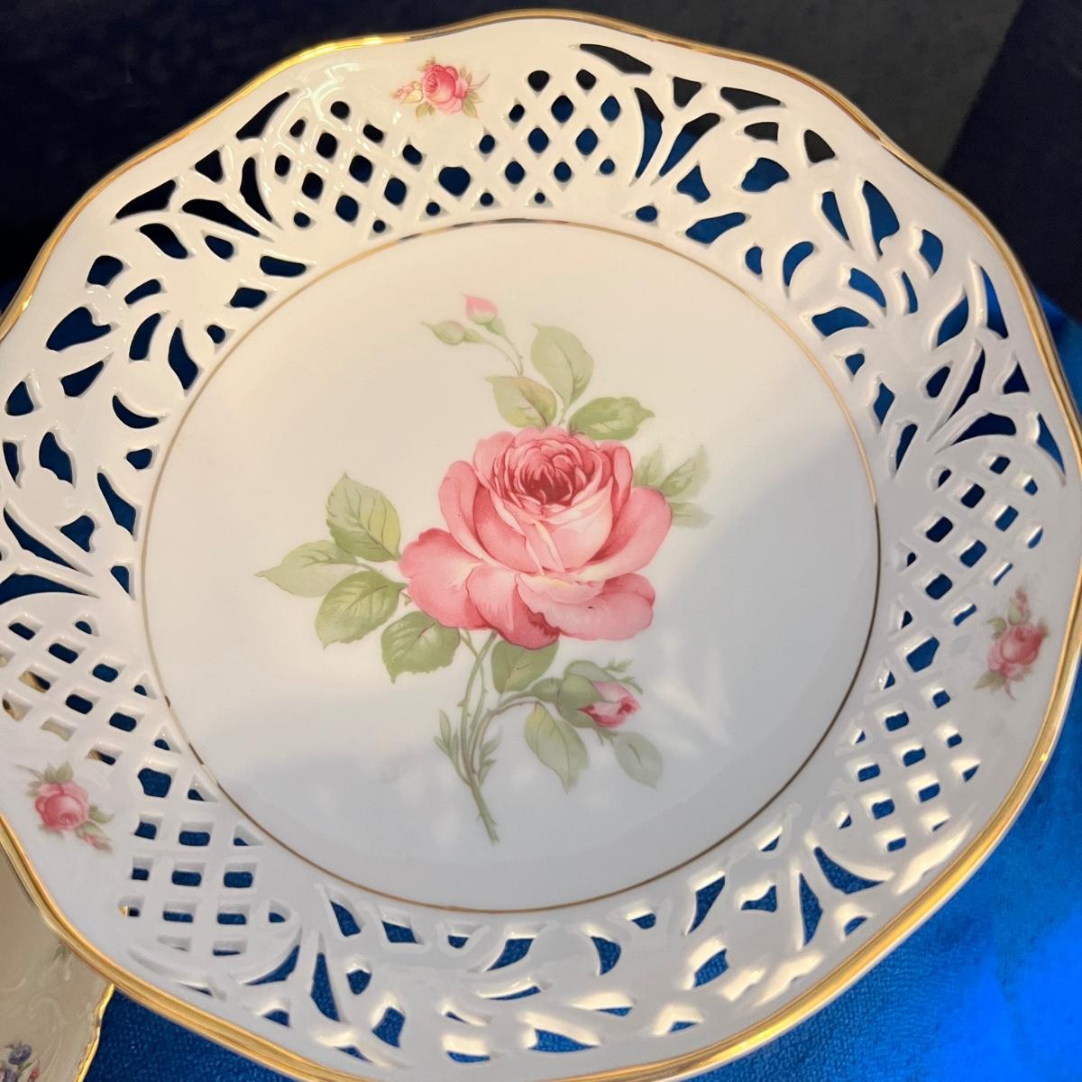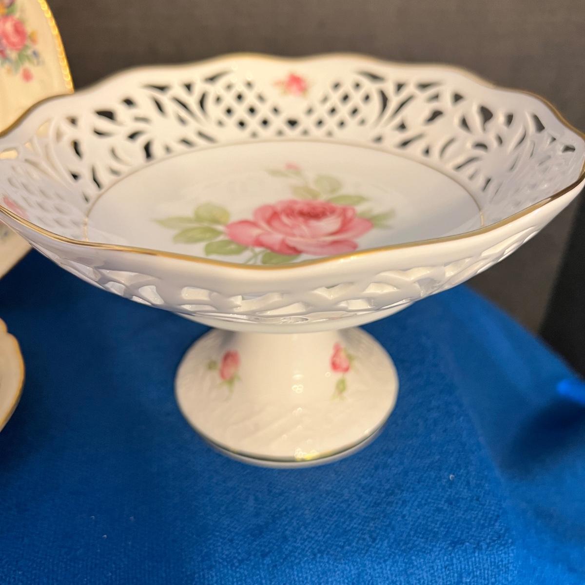 Vintage porcelain including Schumann Arzberg Reticulated Footed Bowl, Edelstein teacups with plates, plates, etc.