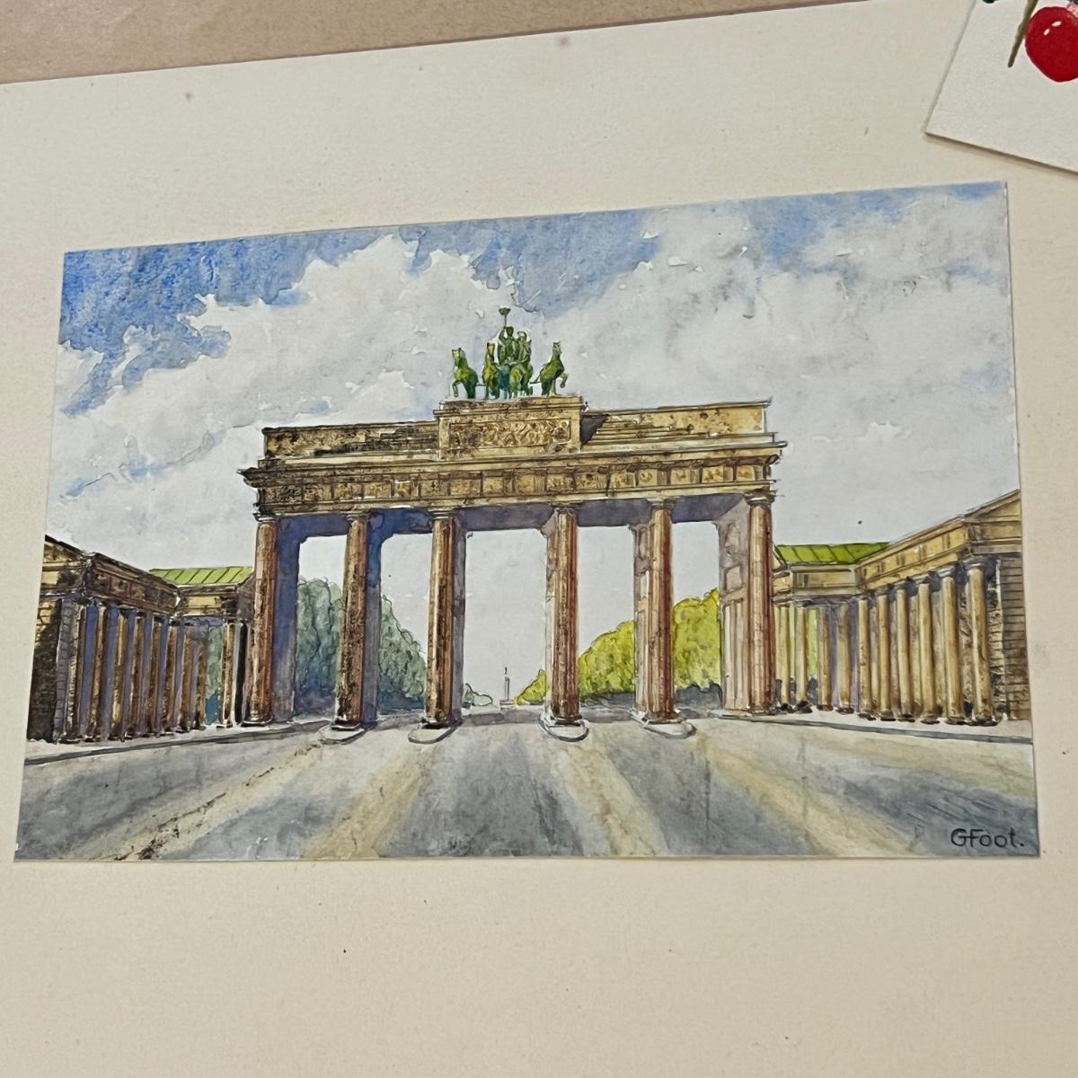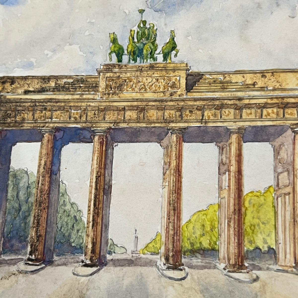 Vintage Brandenburg Gate Berlin Original Watercolor Art