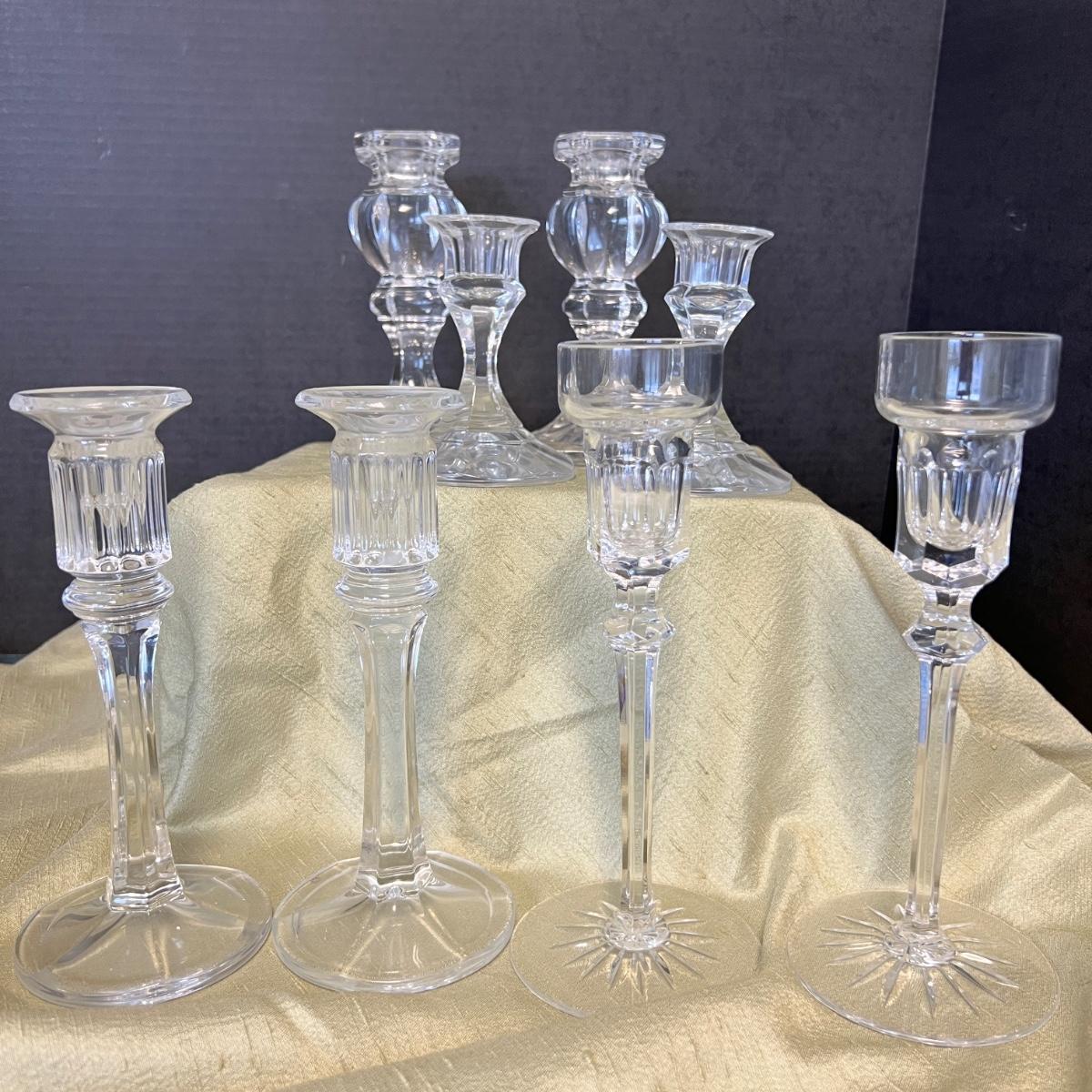 4 Pairs Vintage Crystal Glass Candlestick Holders