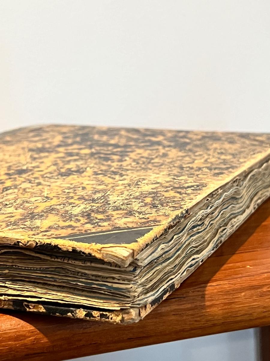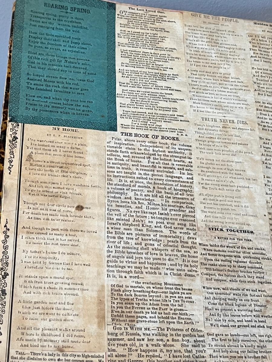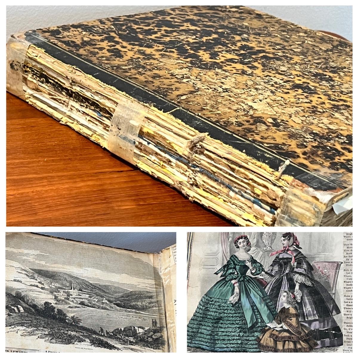 Very cool antique scrapbook bound with string. Most clippings are poems. The earliest date I found was 1859. There are also loose "Cruise News" newsletters from the White Star Line 1929.