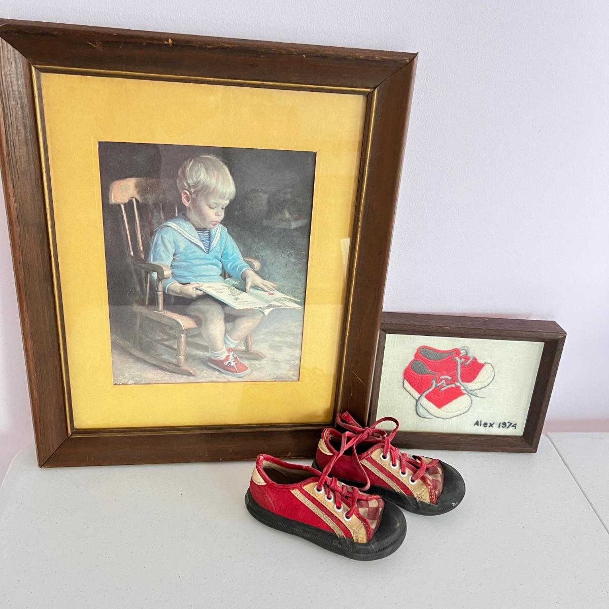Vintage Framed Print, Embroidery & Keds Super Sneaks