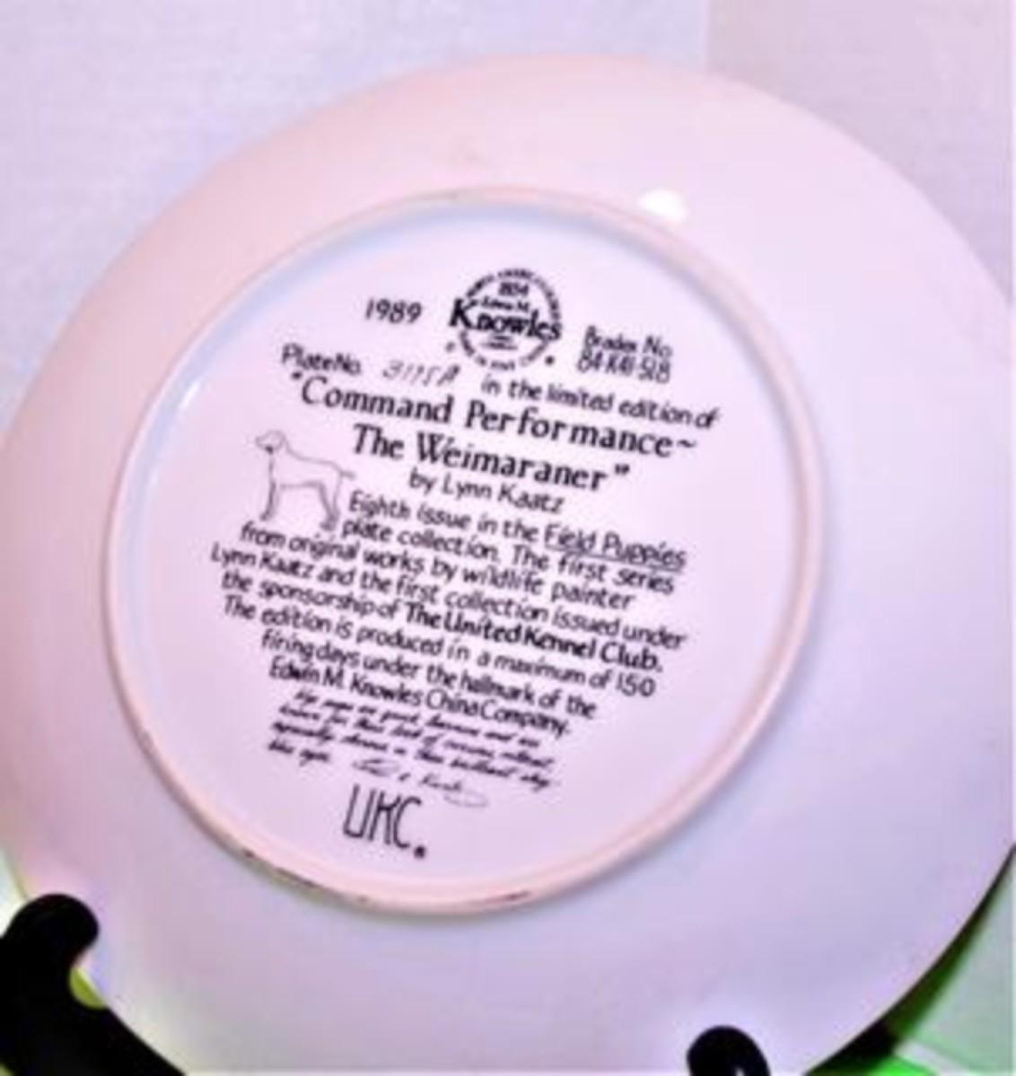 "Command Performance-The Weimaraner" by Artist Lynn Kaatz - Includes: Plate #3175A, 8½" Diameter & Date Closing 1989