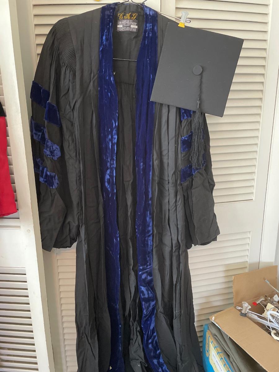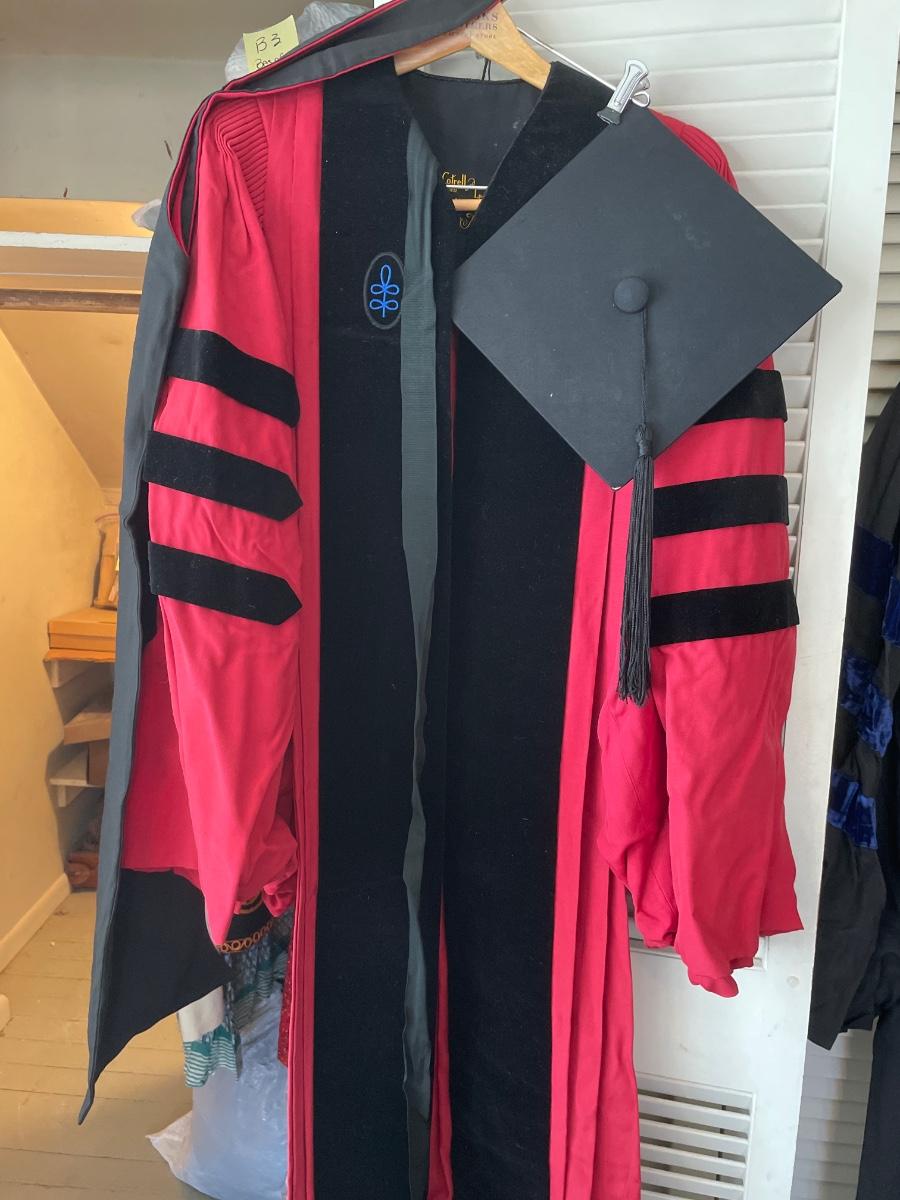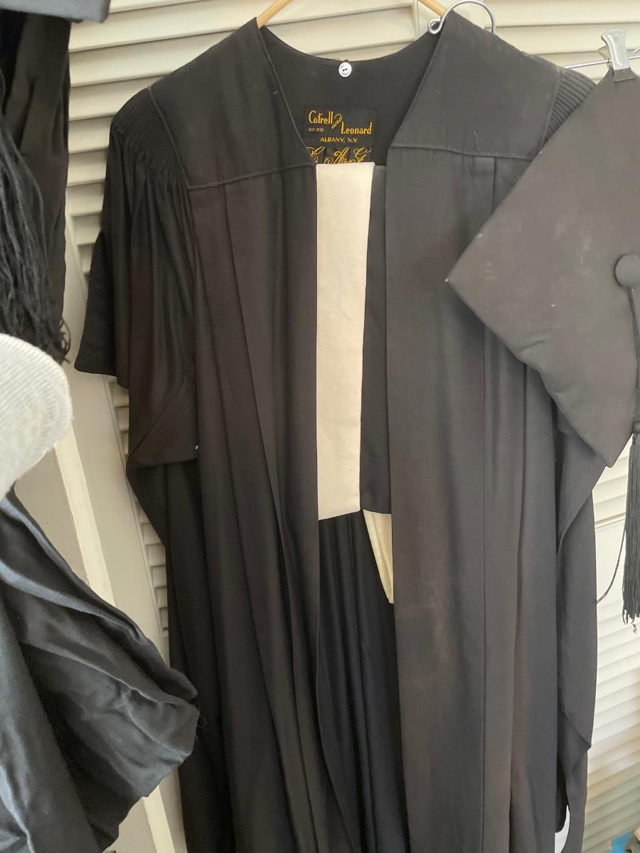 Cotrell & Leonard, Albany NY Doctoral Commencement Robe. E R Moore Co doctoral gown. Citrell & Leonard commencement gown