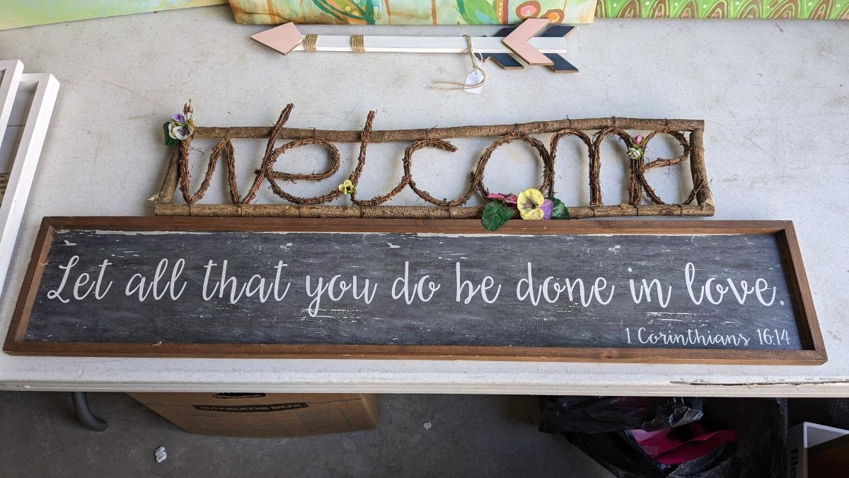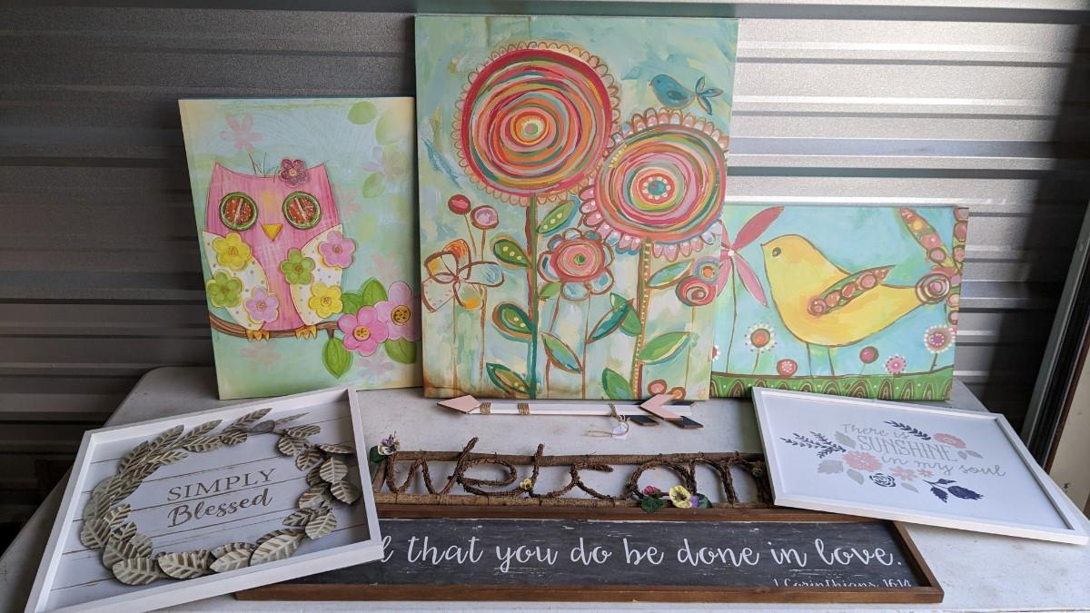if you love Hobby Lobby and signs for the house, this one is for you! Note that large canvas has damage on bottom. largest piece at 24"x30". no shipping. 2604