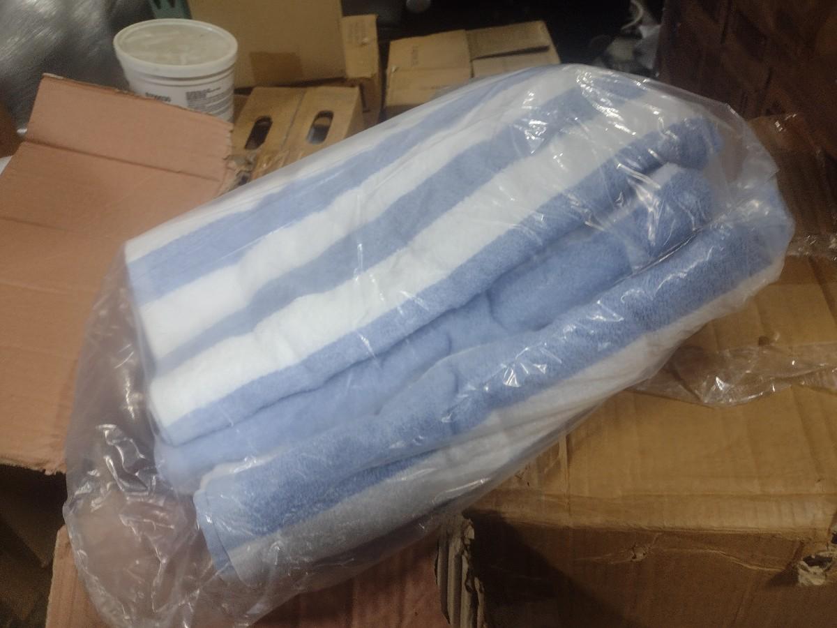 Commercial Bath Towels New in Package Blue Stripe 2doz.total