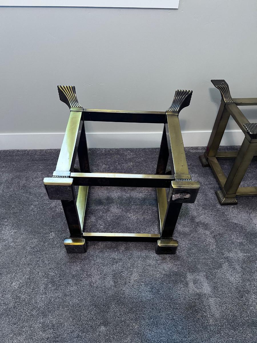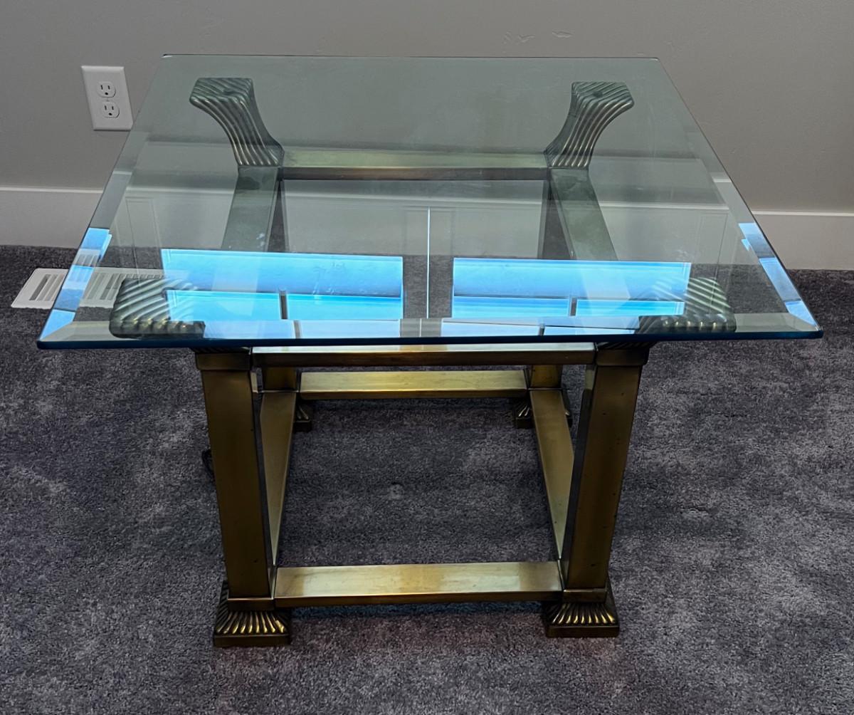 Commercial Beveled Edge Heavy Glass and Brass End Tables PAIR