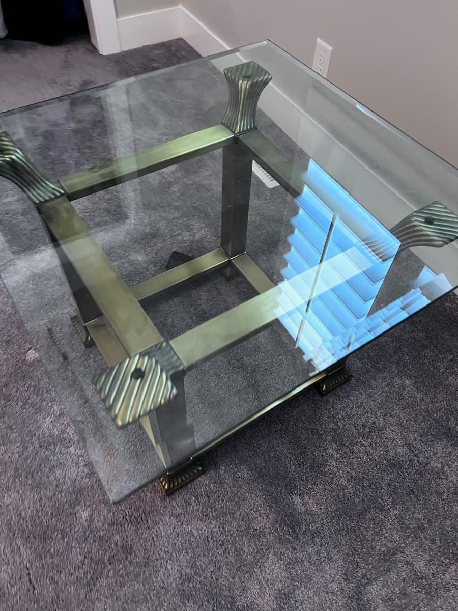 Used. GOOD CONDITION. Does not show wear. Glass Measures 28" Square.
