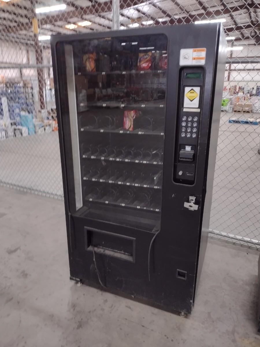 Commercial Chip and Snack Vending Machine Choice E no key door and lock has some damage as shown Shipping option via freight or local mover is Buyer's responsibility and expense. Buyer must have all shipping scheduled within the stated dates and times of pickup. Recommended local mover is Beaty Bros. Moving 828-201-2982