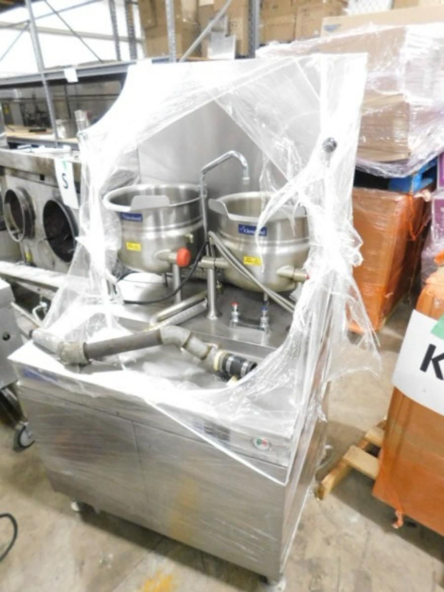 Commercial Cleveland Brand Double Steam Kettle Station Untested but was in working condition when removed from operation. Unsure if all parts or pieces are present. Shipping option via freight or local mover is Buyer's responsibility and expense. Buyer must have all shipping scheduled within the stated dates and times of pickup. Recommended local mover is Beaty Bros. Moving 828-201-2982