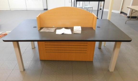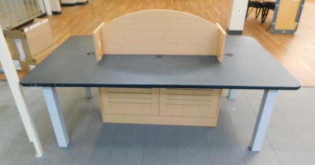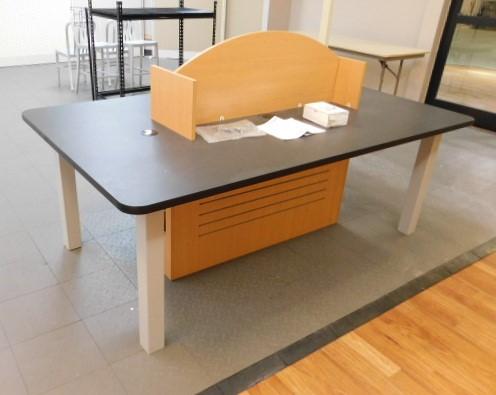 Commercial Customer Station or Computer Kiosk Table 84"x48"x30". Nice contemporary design kiosk or customer service computer table. Double width for privacy if needed. Cable Ports. In very good condition and high quality.