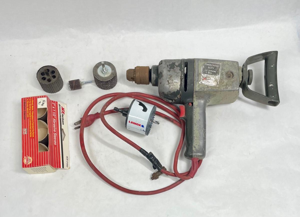 Commercial Duty 1/2” Reversing Electric Drill and Accessory Lot