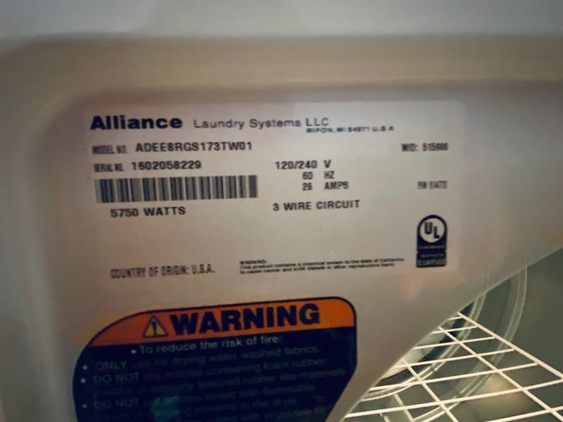 Washer Model No. - AWNE82SP113TW01. / Dryer Model No. - ADEE8RGS173TW01