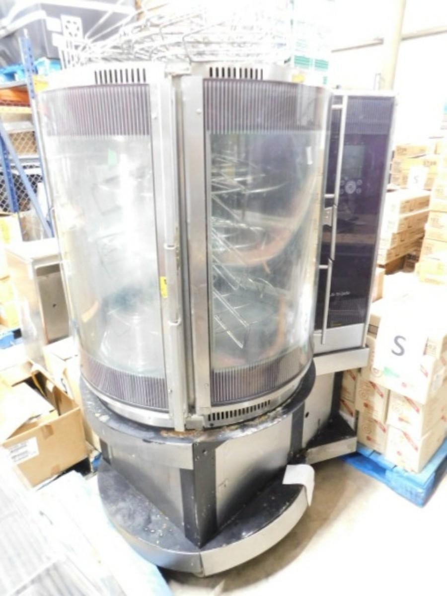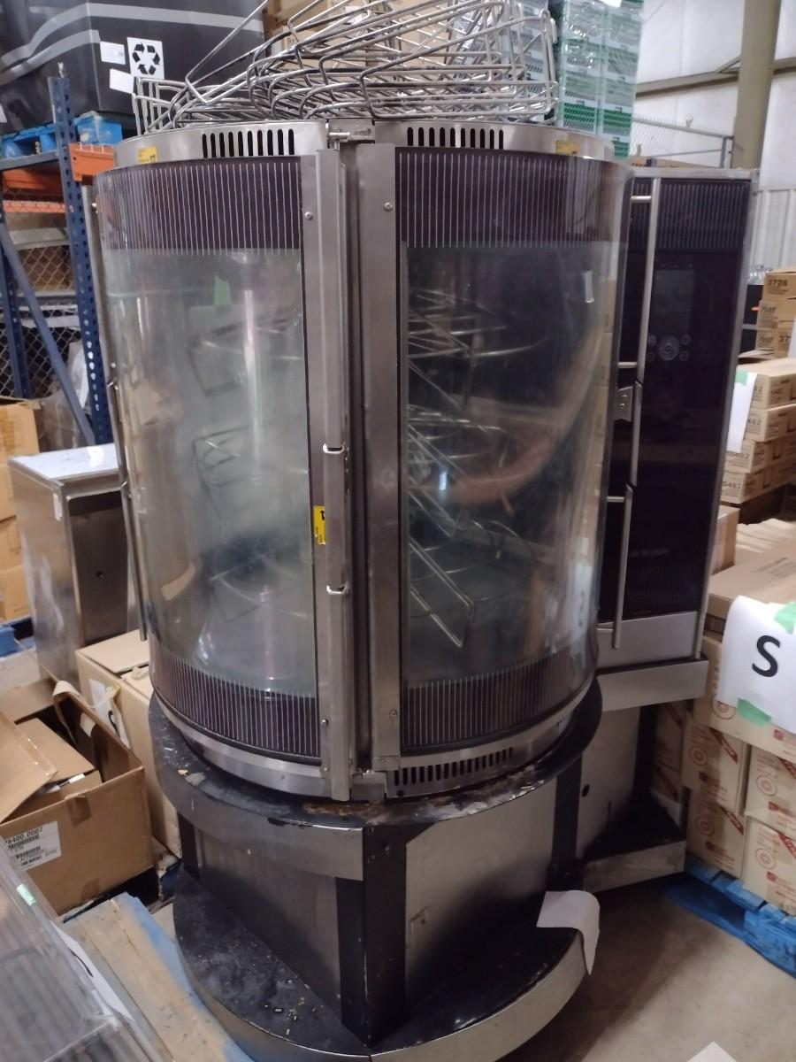Fri-Jado Multi-Rotisserie Oven Holds Up to 60 Whole Chickens 3 Phase. Untested but was in working condition when removed from operation. Shipping option via freight or local mover is Buyer's responsibility and expense. Buyer must have all shipping scheduled within the stated dates and times of pickup. Recommended local mover is Beaty Bros. Moving 828-201-2982