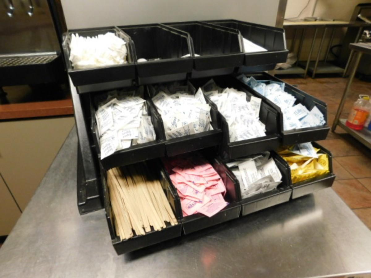 Commercial Kitchen Grade Composite Condiment Service Caddy 12 Compartment Choice A Expect some wear or scratches to finish. Shipping option available via freight or local mover at Buyer's expense. Buyer must have all shipping scheduled within the stated dates and times of pickup. Recommended local mover is Beaty Bros. Moving 828-201-2982
