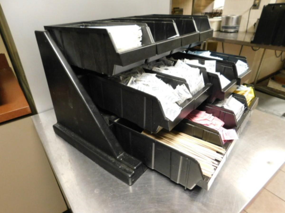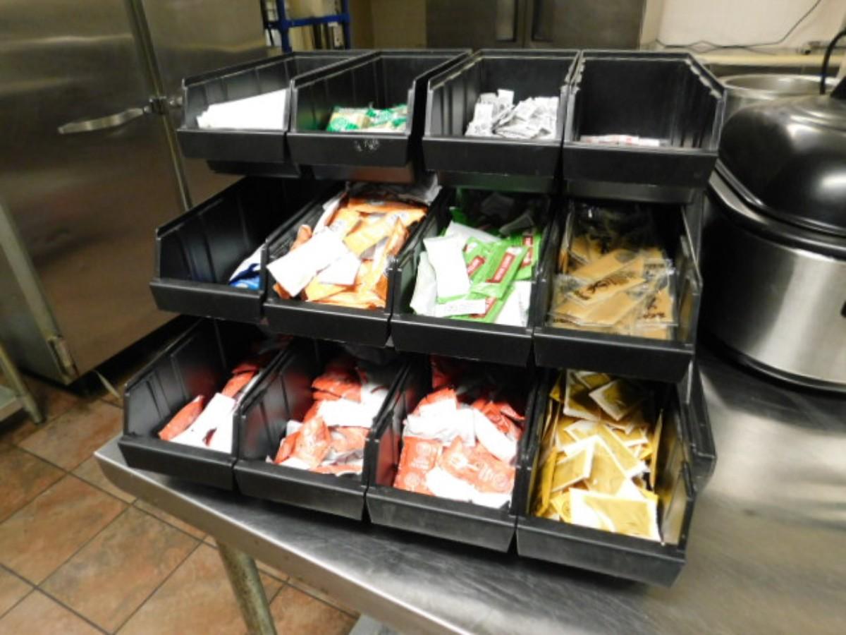 Commercial Kitchen Grade Composite Condiment Service Caddy 12 Compartment Choice B Expect some wear or scratches to finish. Shipping option available via freight or local mover at Buyer's expense. Buyer must have all shipping scheduled within the stated dates and times of pickup. Recommended local mover is Beaty Bros. Moving 828-201-2982
