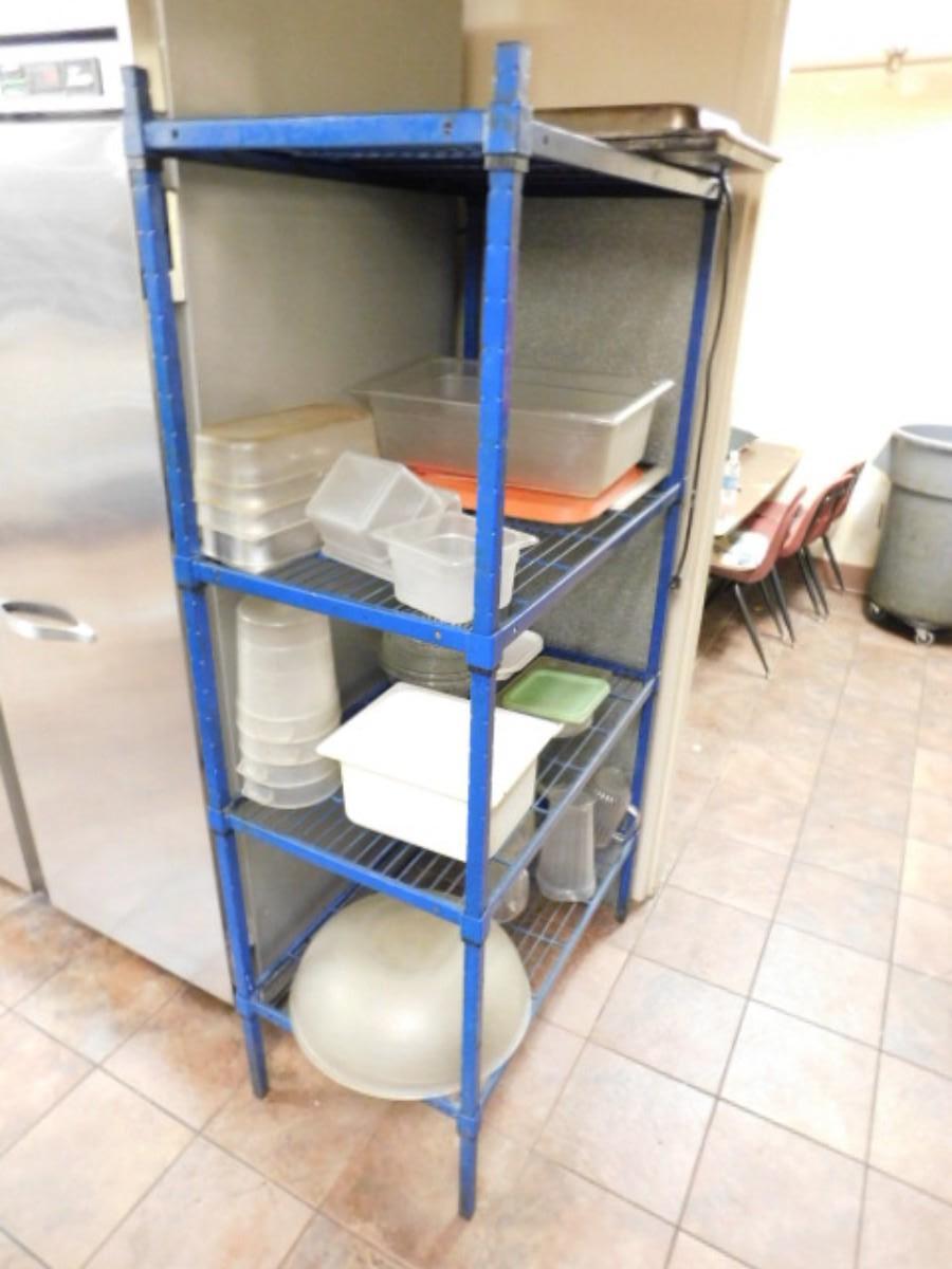 Commercial Kitchen Metal Storage Rack (No Contents) Expect some wear or scratches to finish. Shipping option available via freight or local mover at Buyer's expense. Buyer must have all shipping scheduled within the stated dates and times of pickup. Recommended local mover is Beaty Bros. Moving 828-201-2982