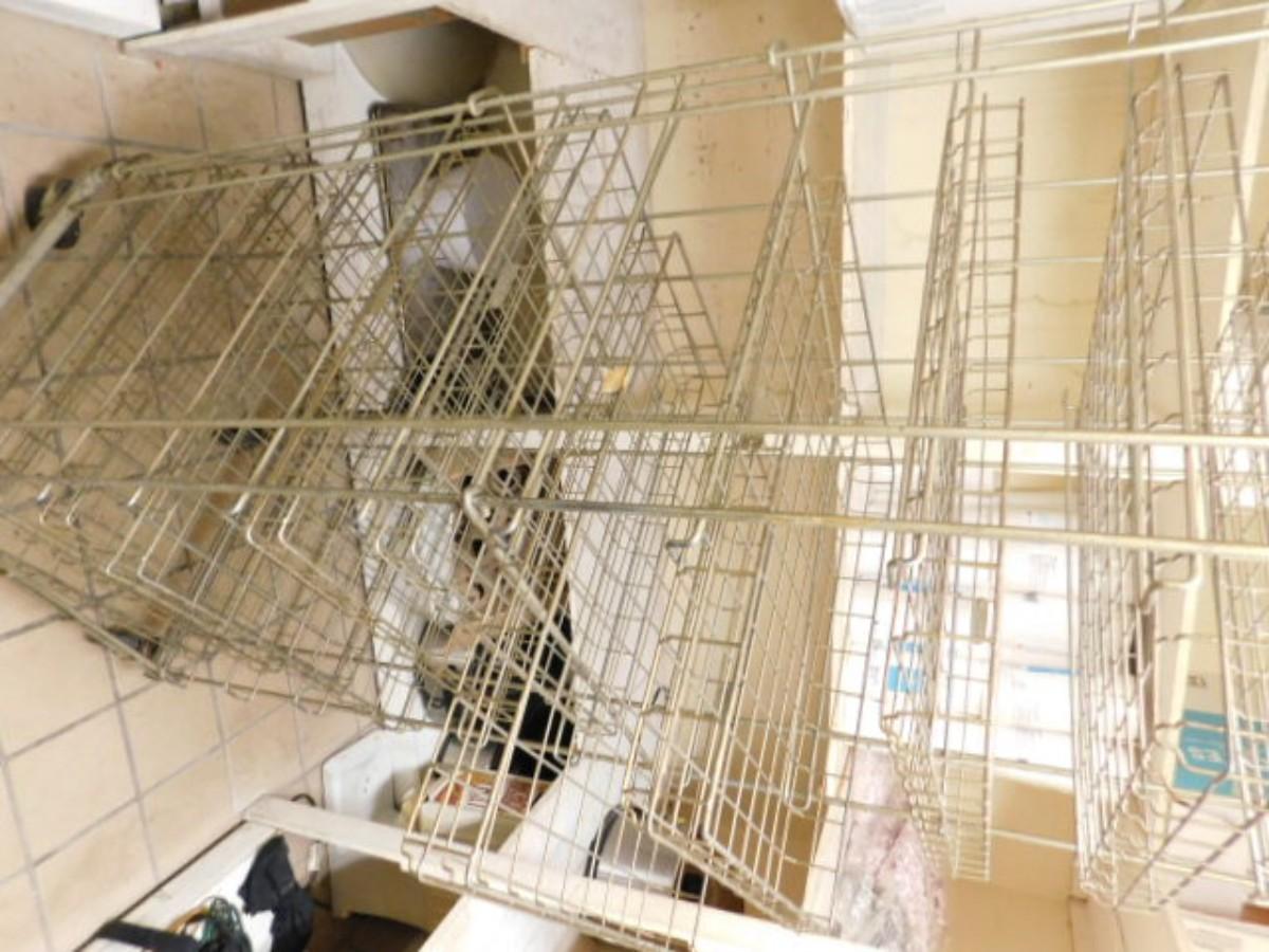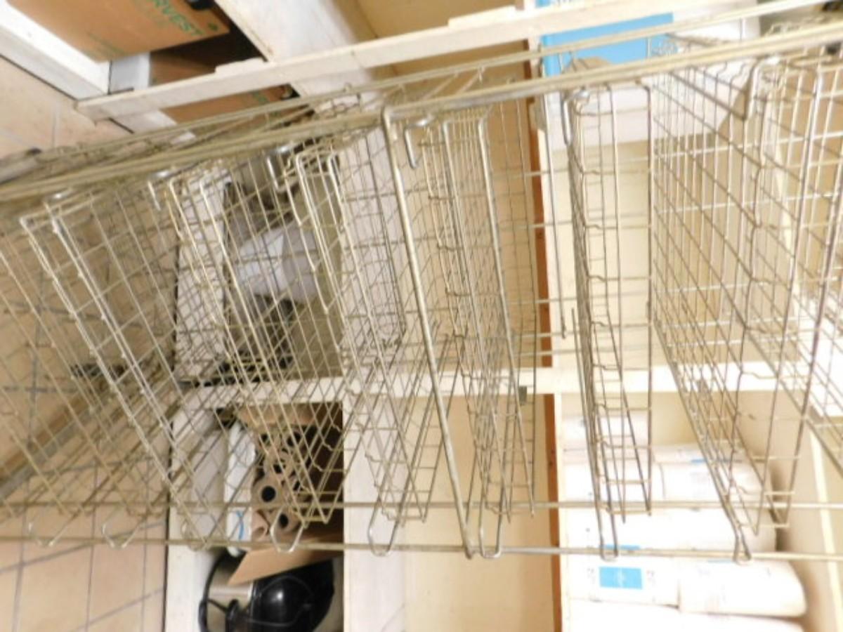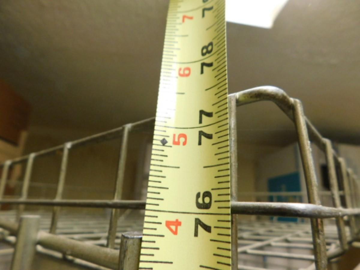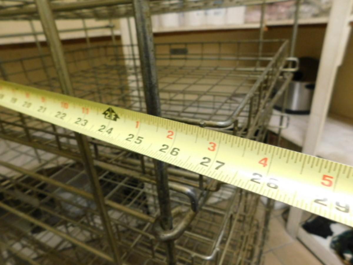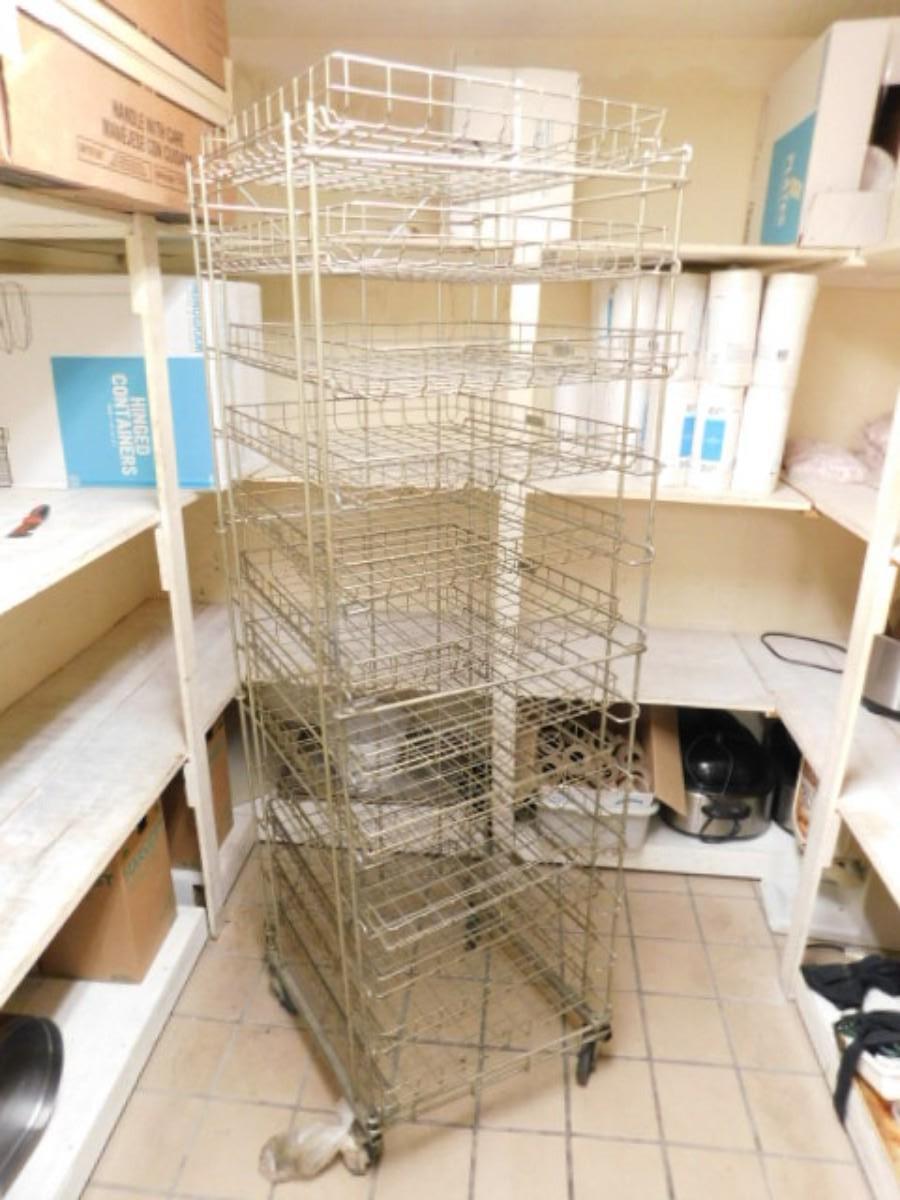 Commercial Kitchen Wire Rack with Sliding Basket Shelves. Expect some wear or scratches to finish. Shipping option available via freight or local mover at Buyer's expense. Buyer must have all shipping scheduled within the stated dates and times of pickup. Recommended local mover is Beaty Bros. Moving 828-201-2982