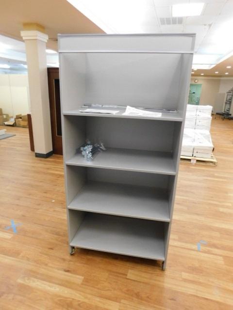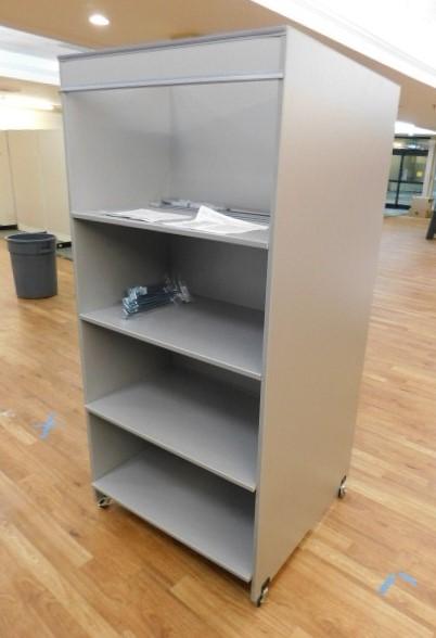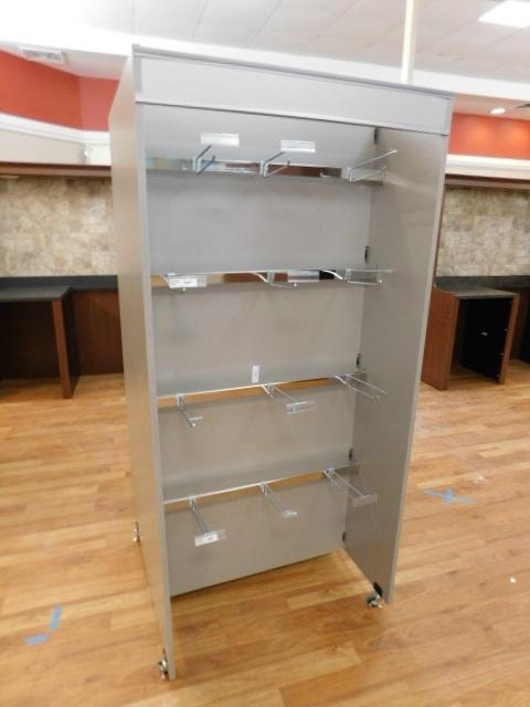 Commercial Laminate Double Sided Mobile Shelf and Rack Display 3'x3'x6.5'