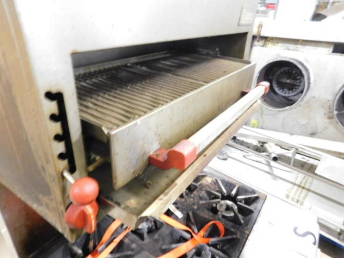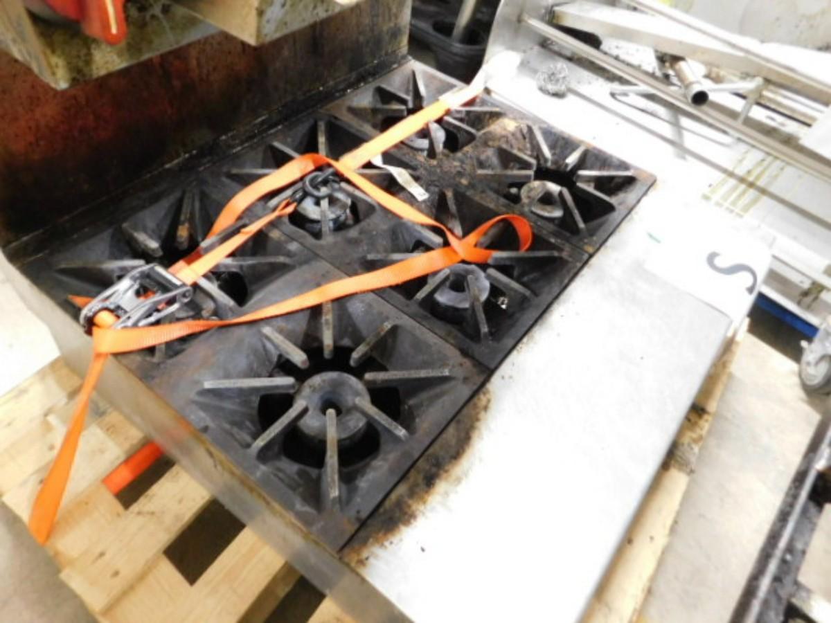 Commercial Lang Brand 6 Burner Gas Stove with Broiler Untested but was in working condition when removed from operation. Unsure if all parts or pieces are present. Shipping option via freight or local mover is Buyer's responsibility and expense. Buyer must have all shipping scheduled within the stated dates and times of pickup. Recommended local mover is Beaty Bros. Moving 828-201-2982