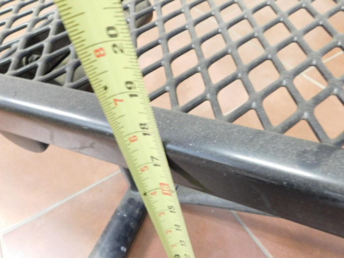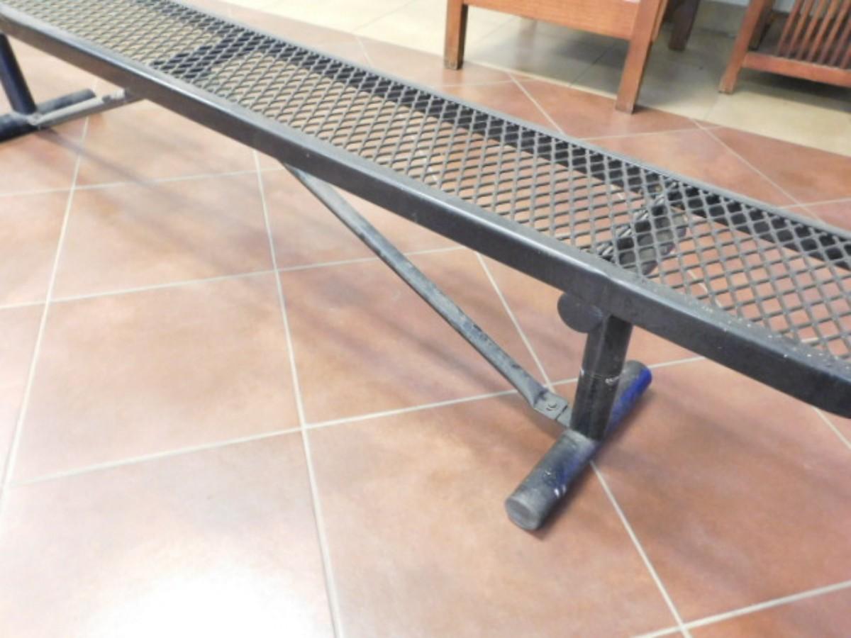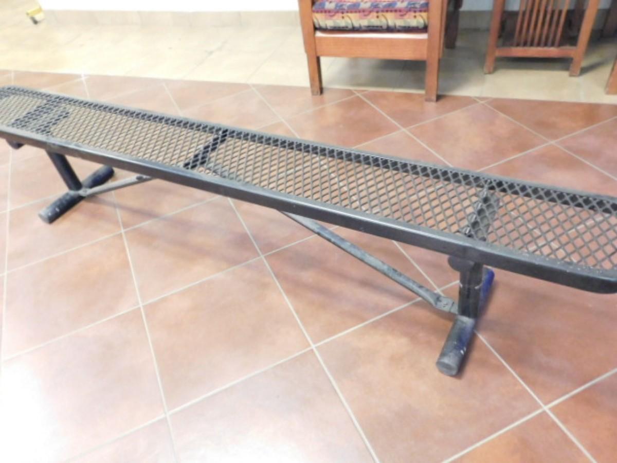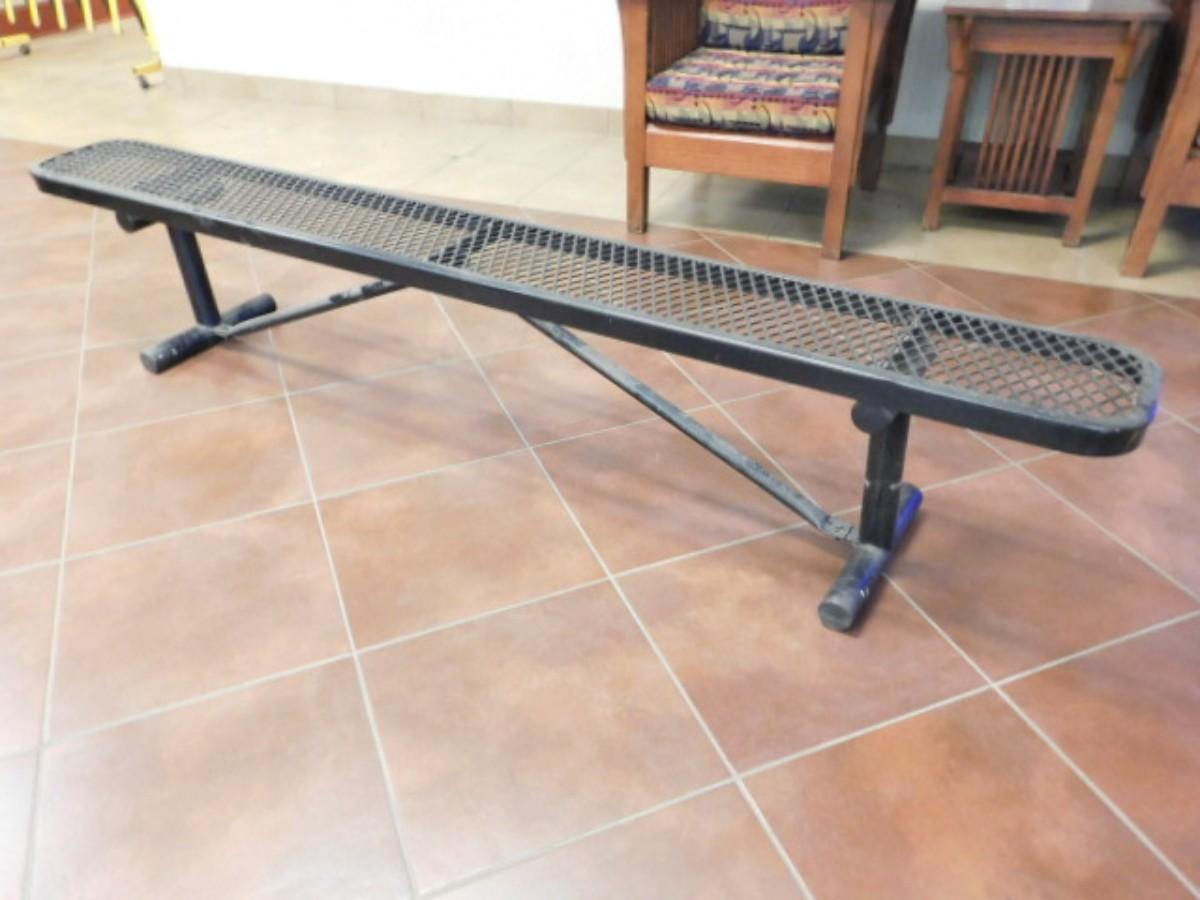 Commercial Metal Outdoor Seated Bench 8' Choice A. Expect some wear or scratches to finish. Shipping option available via freight or local mover at Buyer's expense. Buyer must have all shipping scheduled within the stated dates and times of pickup. Recommended local mover is Beaty Bros. Moving 828-201-2982