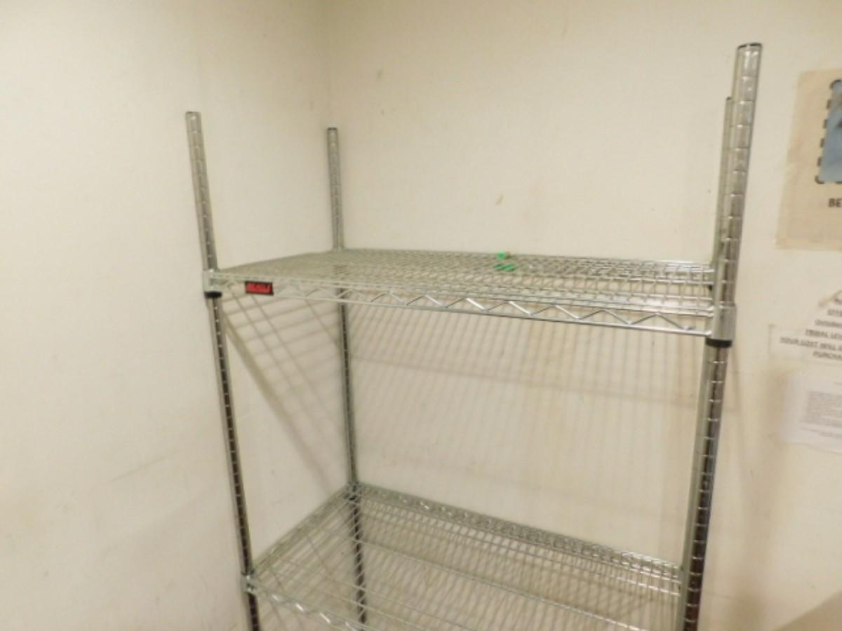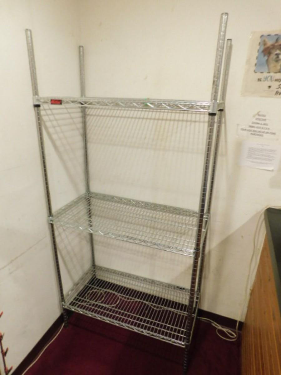Commercial Metal Wire Rack 36" Expect some wear or scratches to finish. Shipping option available via freight or local mover at Buyer's expense. Buyer must have all shipping scheduled within the stated dates and times of pickup. Recommended local mover is Beaty Bros. Moving 828-201-2982