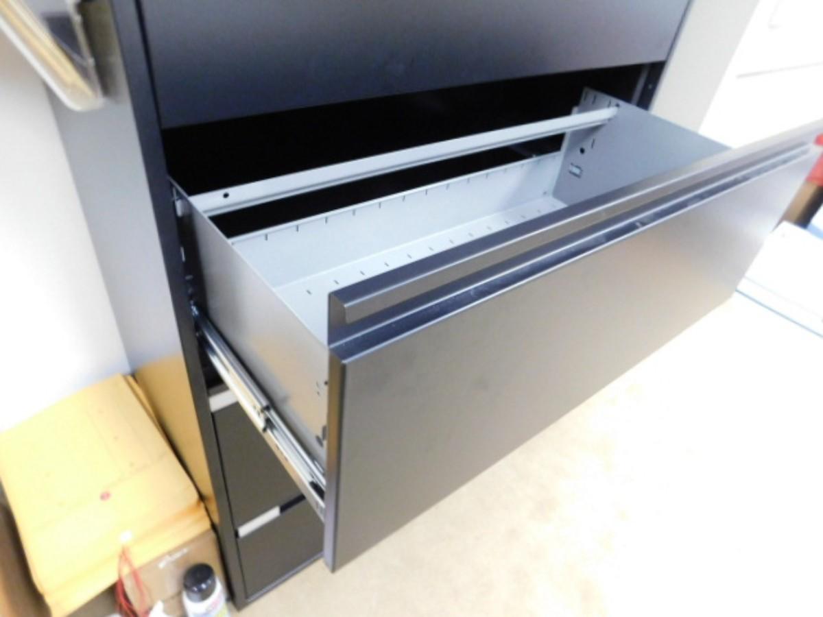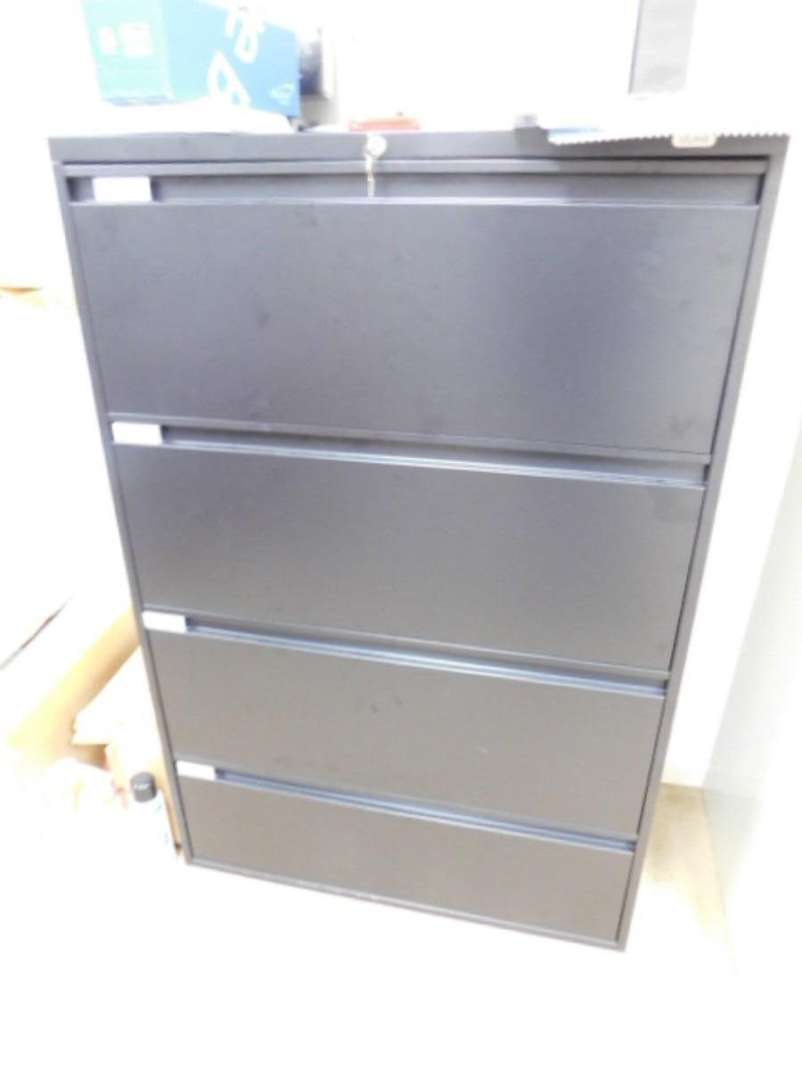 Commercial Office Wide Drawer Metal Filing Cabinet Gray (O#5) Expect some wear or scratches to finish. Shipping option available via freight or local mover at Buyer's expense. Buyer must have all shipping scheduled within the stated dates and times of pickup. Recommended local mover is Beaty Bros. Moving 828-201-2982