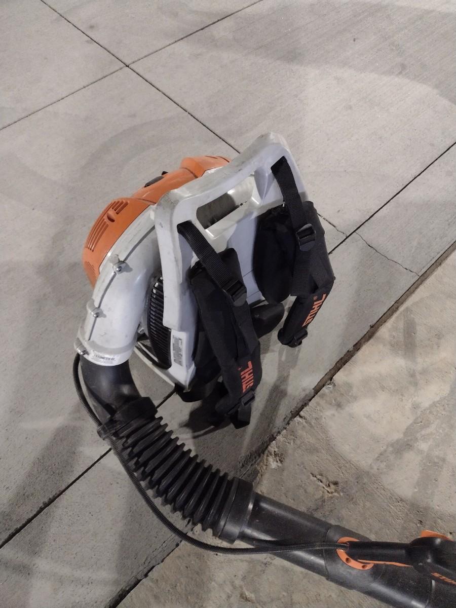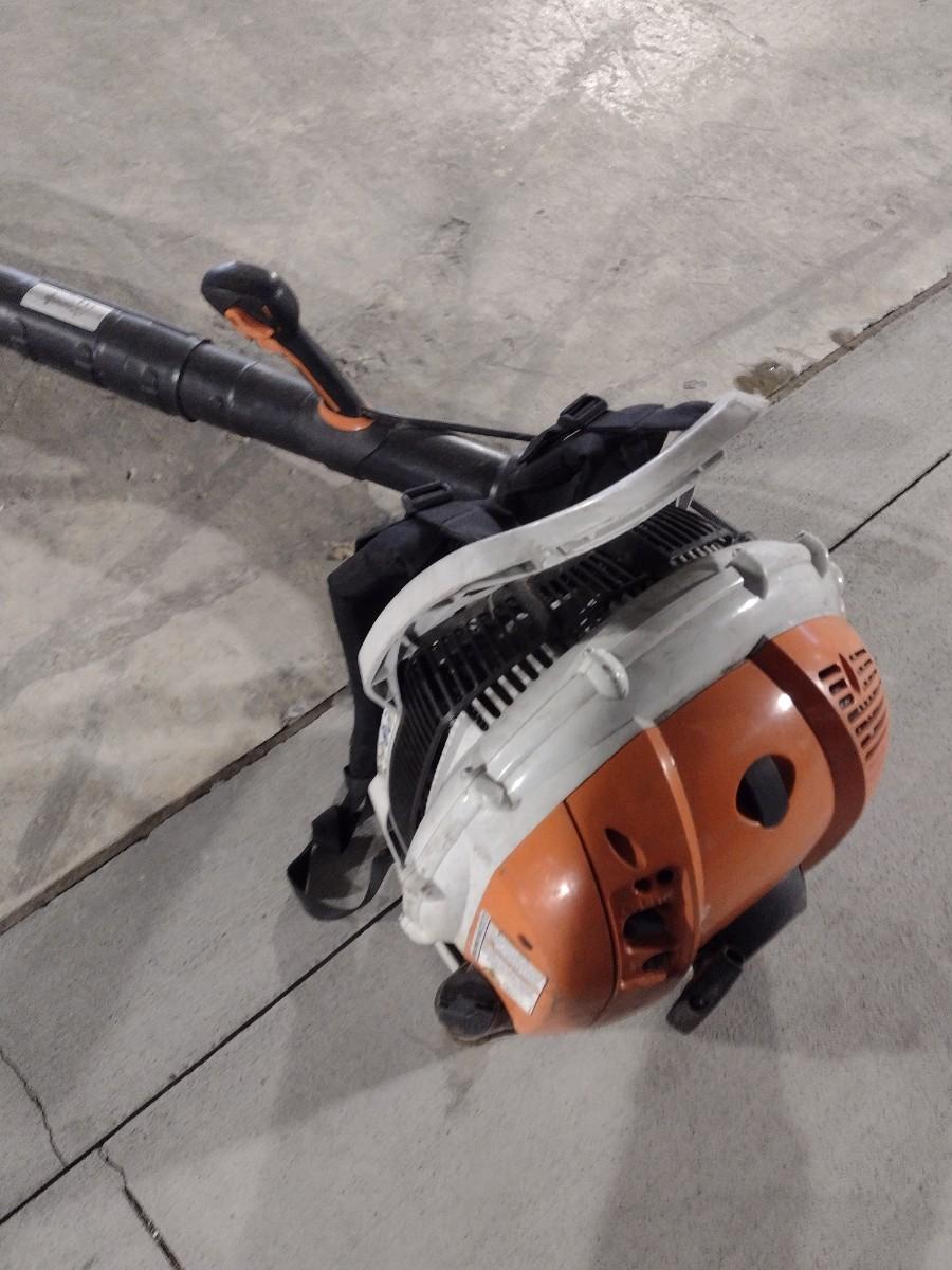 Commercial Stihl BR 600 Gas Powered Professional Backpack Blower (#21). Owner states that item was working at time of retirement. Being sold as is condition. Untested as time of photos.