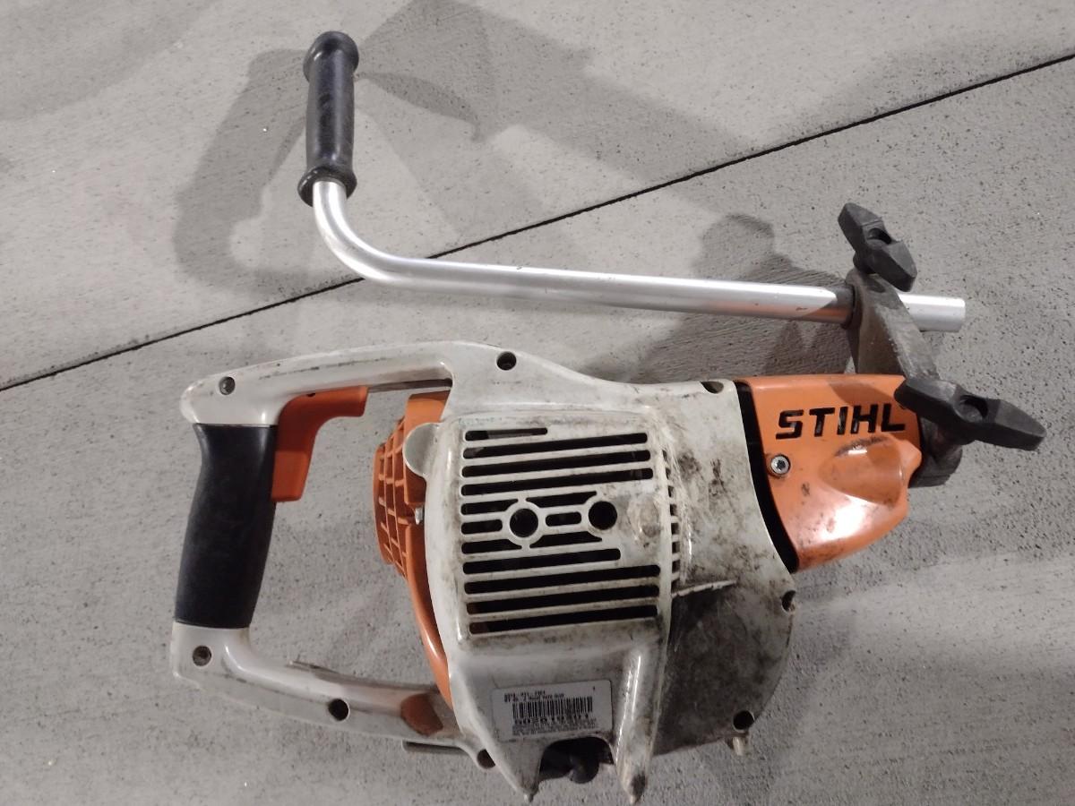 Commercial Stihl BT45 Gas Powered Wood Boring Auger Tool (#6). Owner states that item was working at time of retirement. Being sold as is condition. Untested as time of photos.
