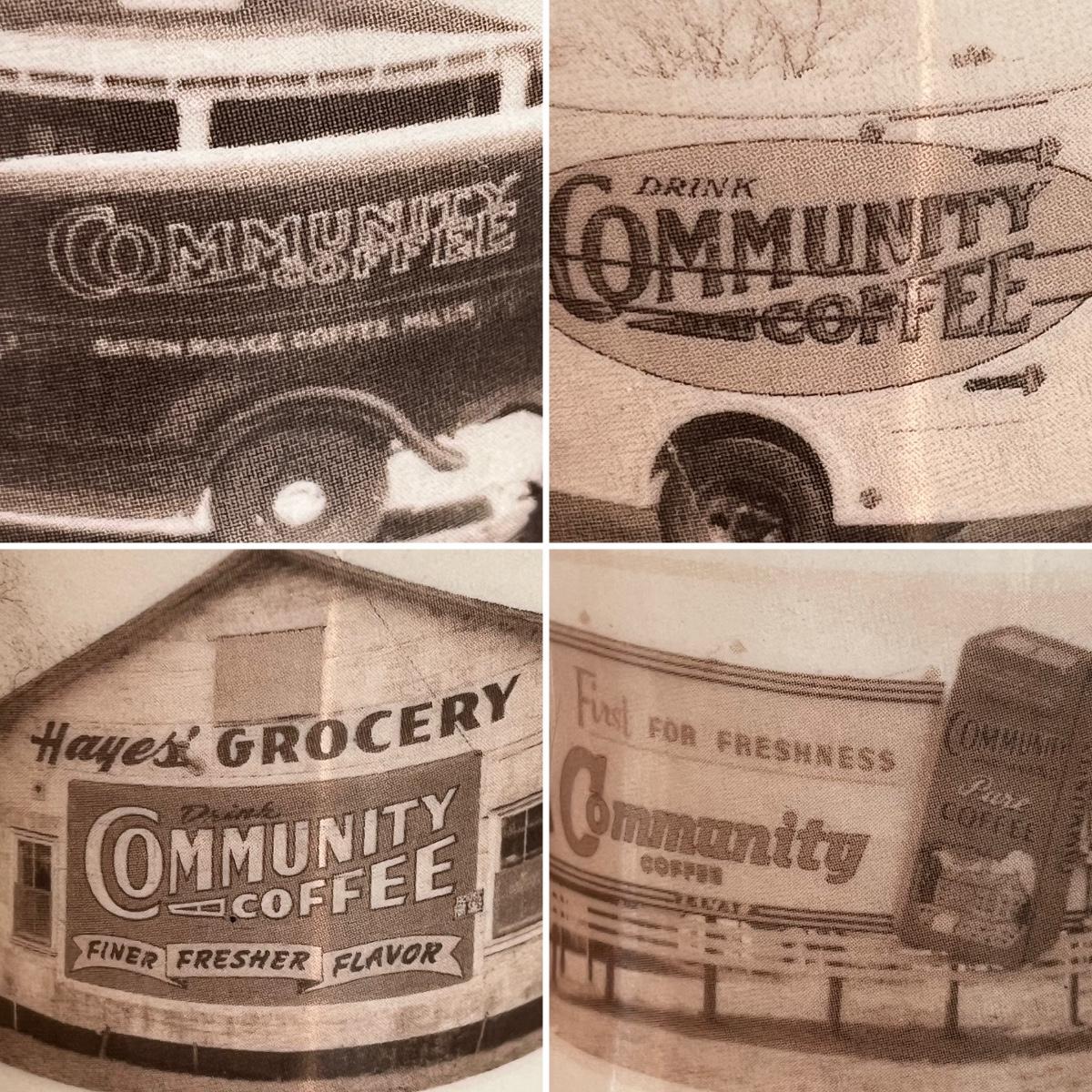 COMMUNITY COFFEE ~ Set Of Four (4) Vtg. Collectible Stoneware Mugs