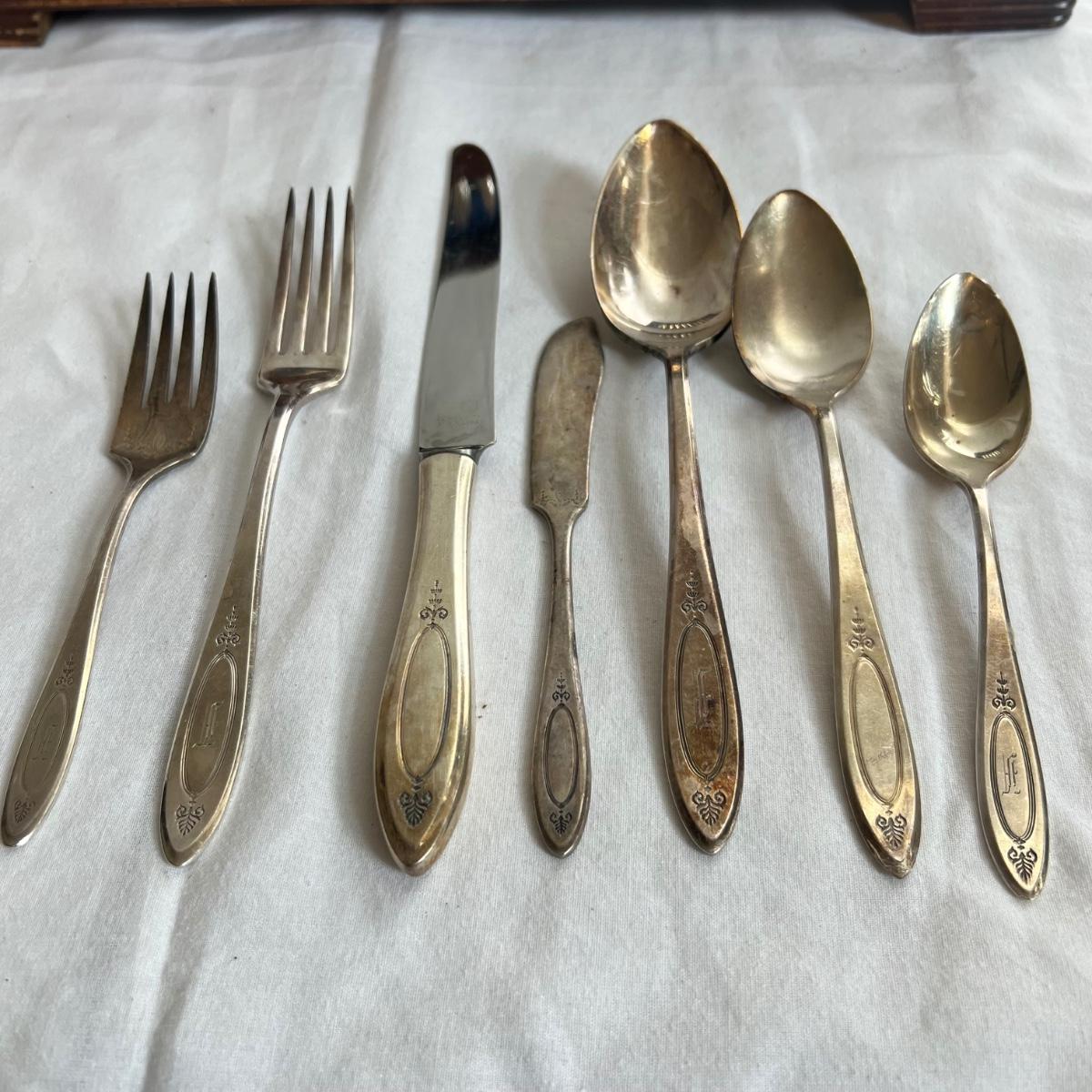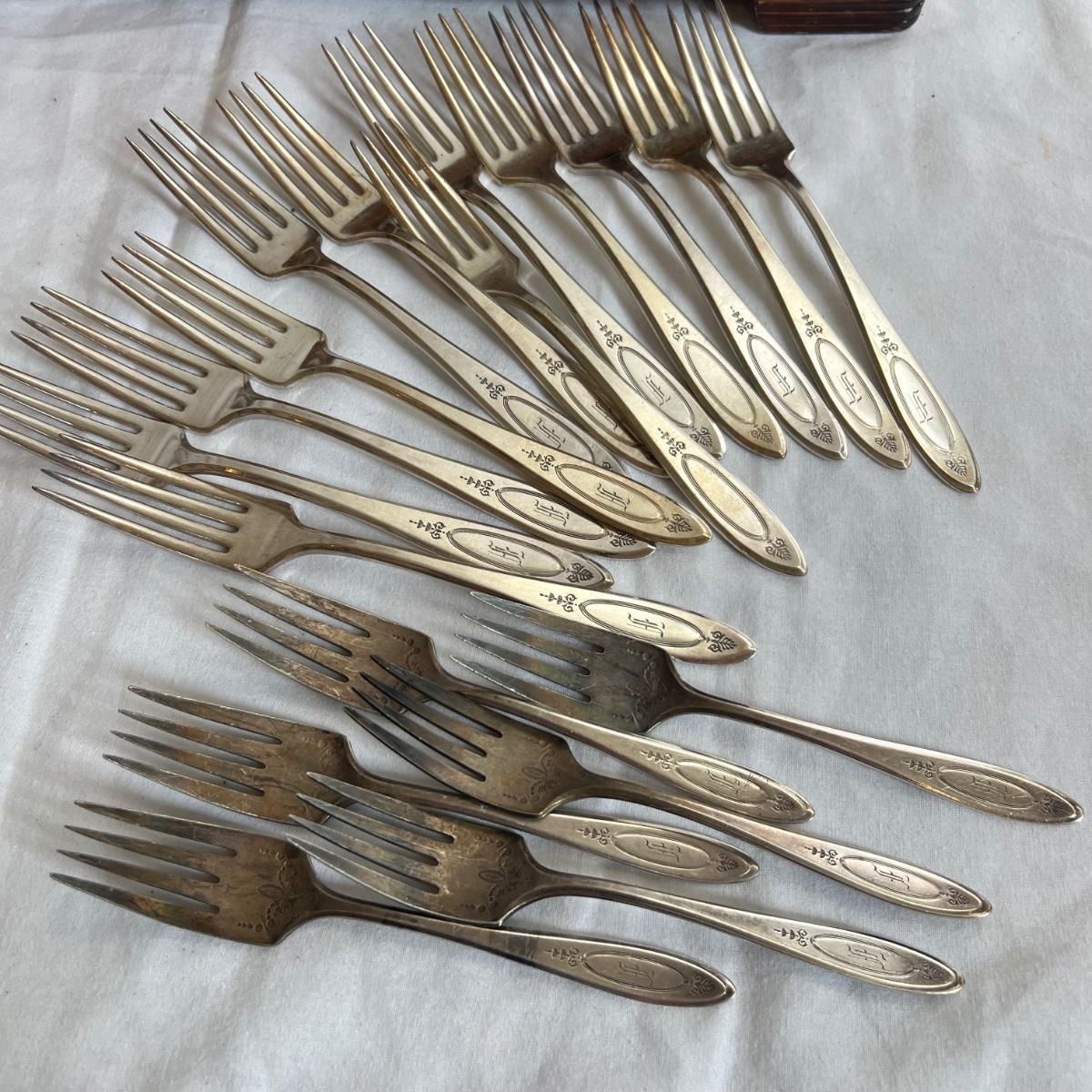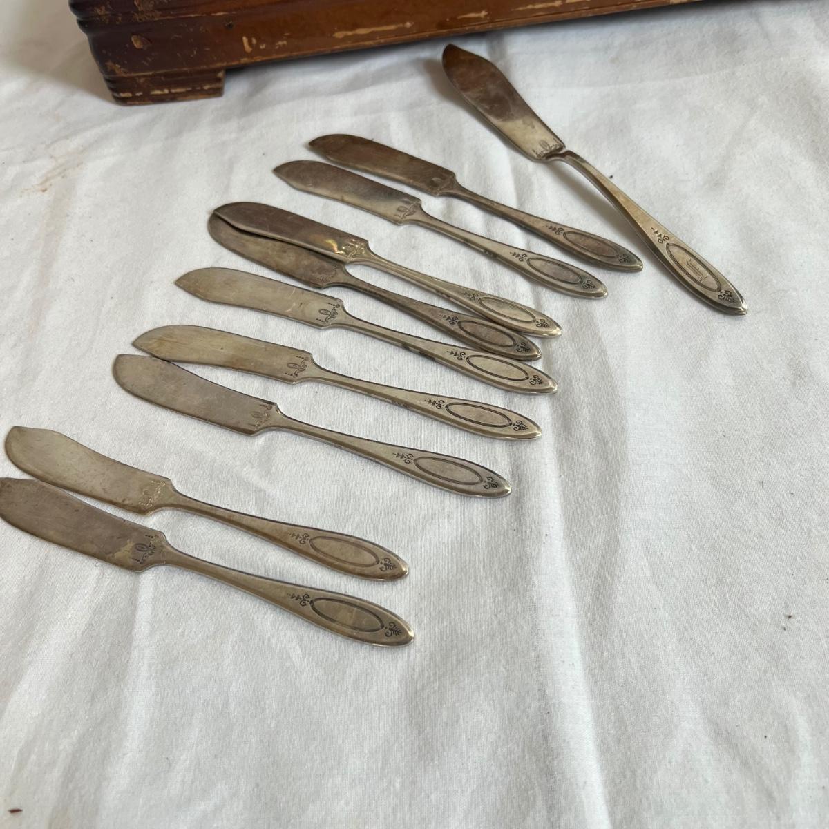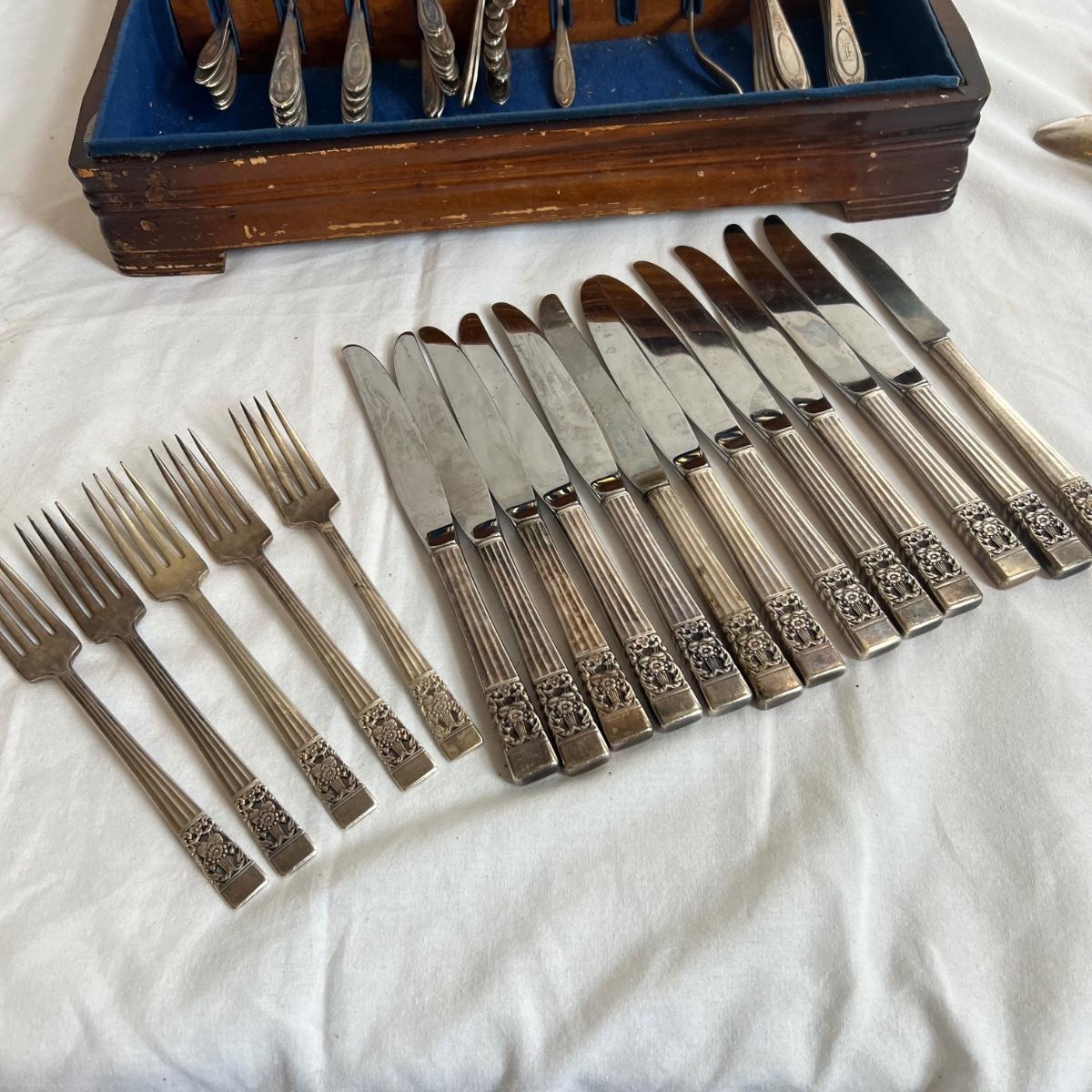 Holmes & Edwards felt lined wooden box is included, it measures 16” x 11” x 4”H.
