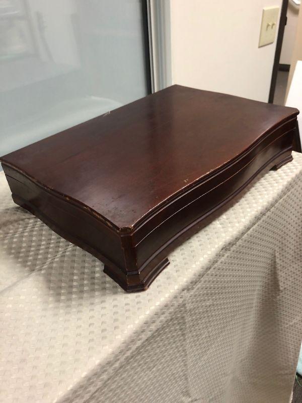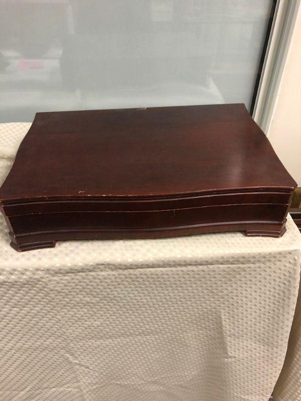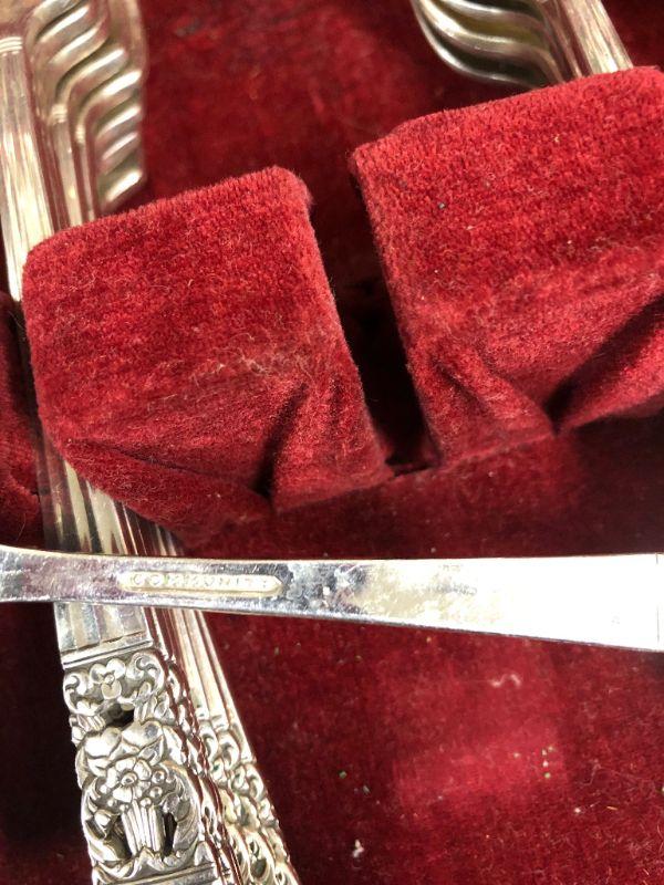 Community plate flatware. Service for 6, missing a salad fork & teaspoon. Comes with 2 serving spoons, butter knife, sugar spoon. Nice lined storage box. Previously owned.