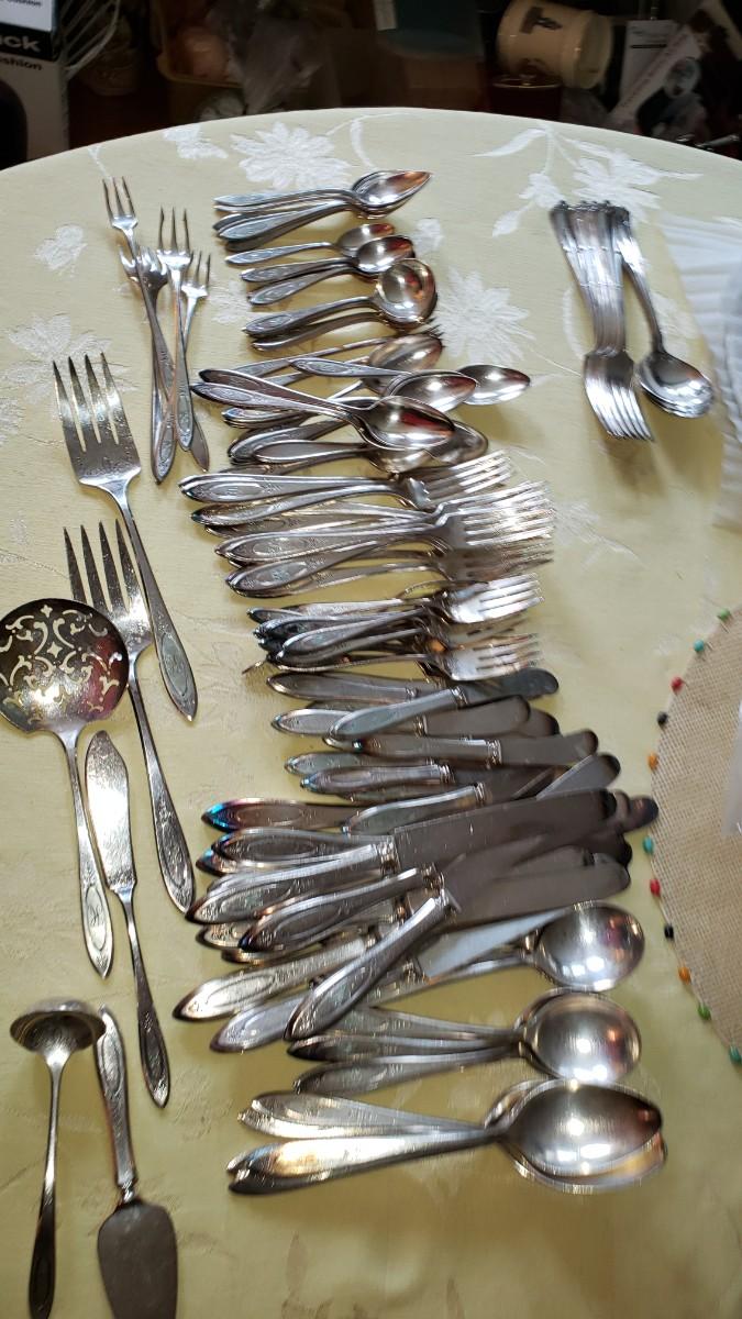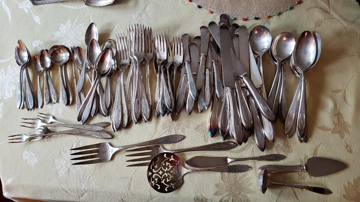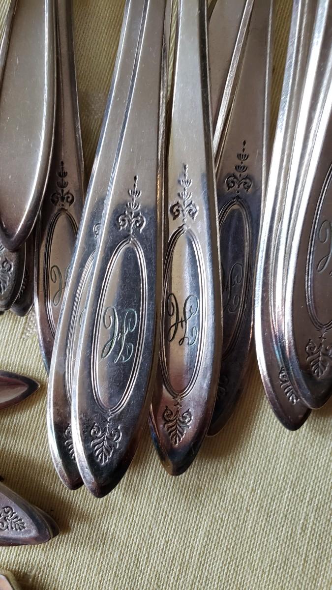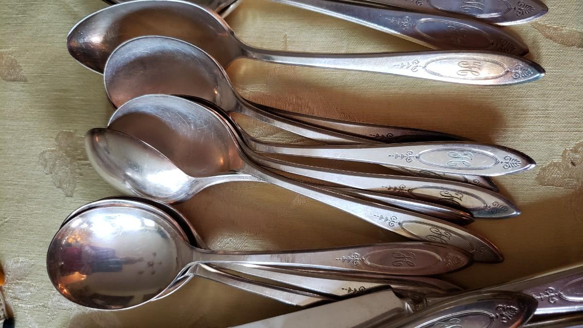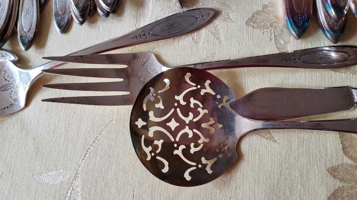 Beautiful Community Plate monogrammed flatware set with soup spoons, serving utensils, etcetera service for at least 10