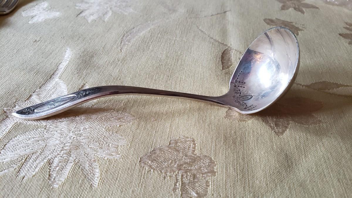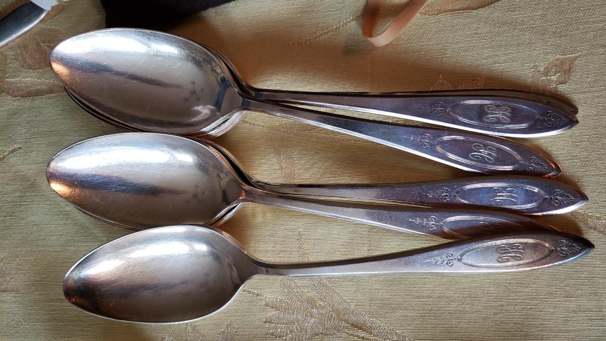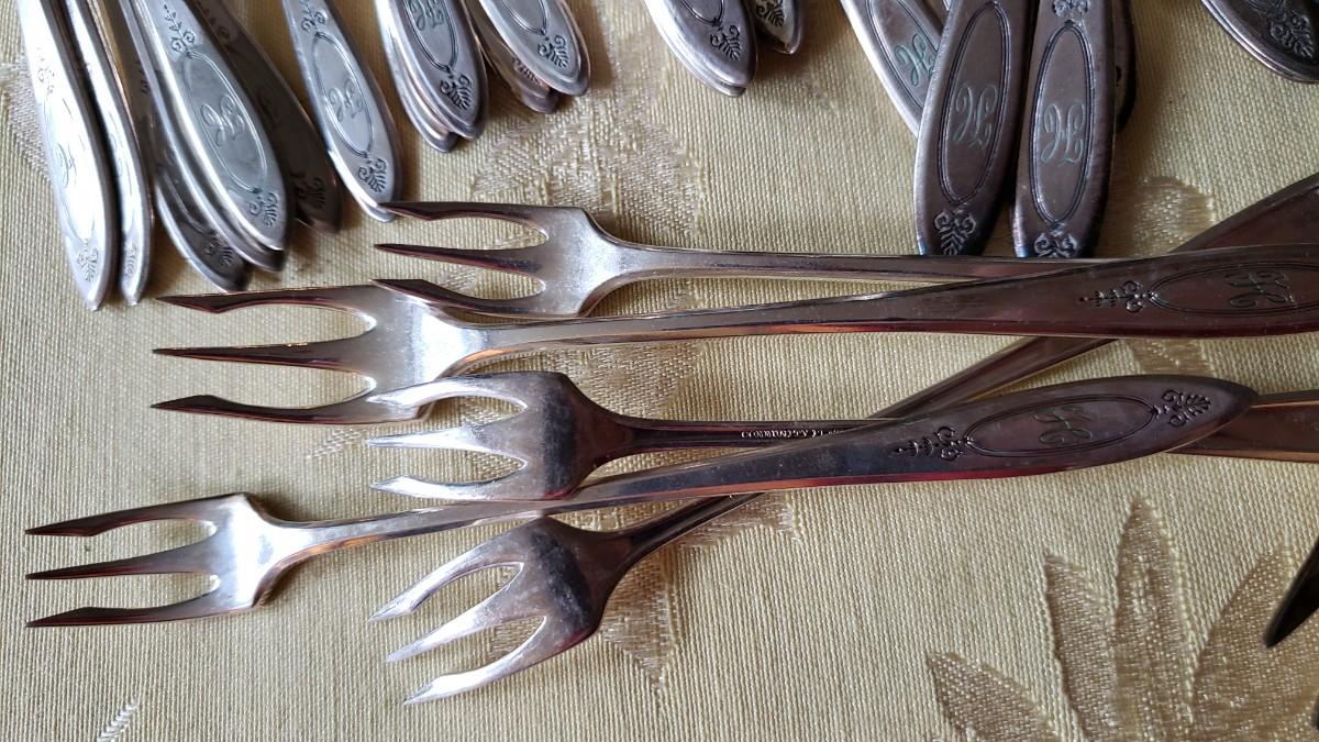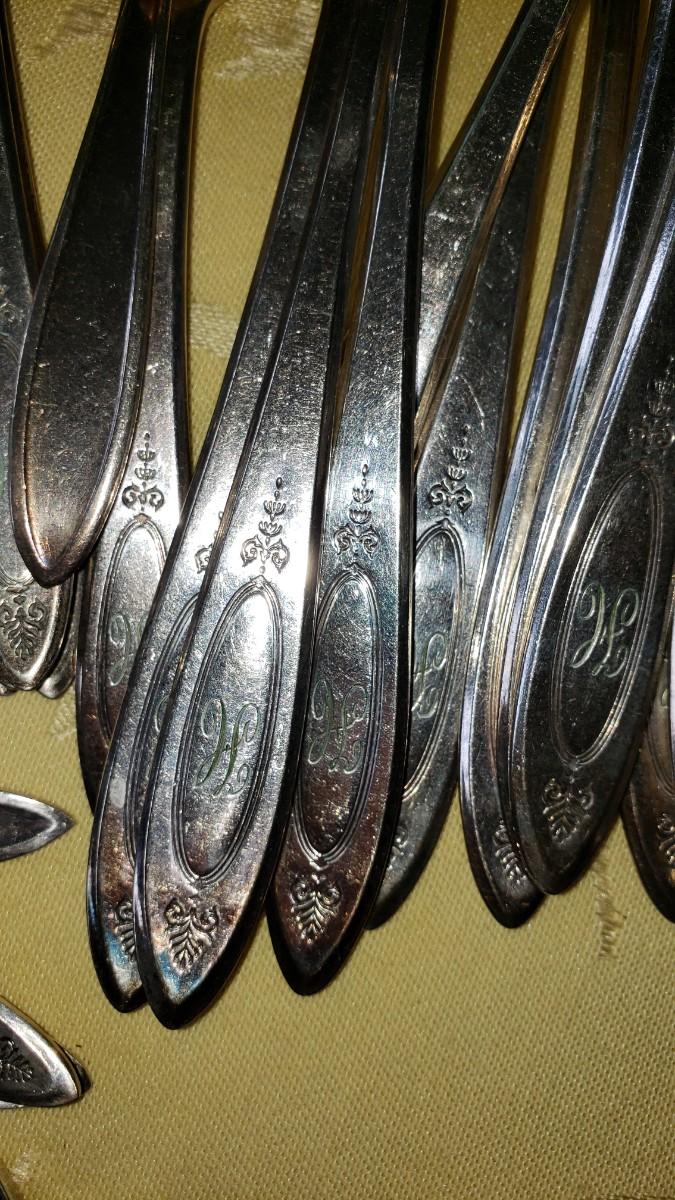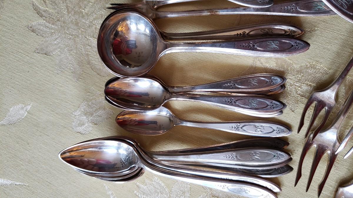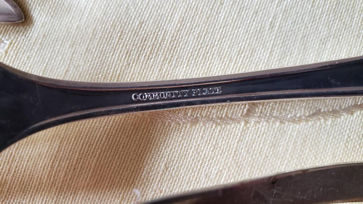 Beautiful Community Plate monogrammed flatware set with soup spoons, serving utensils, etcetera service for at least 10