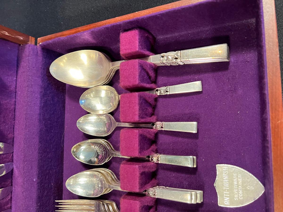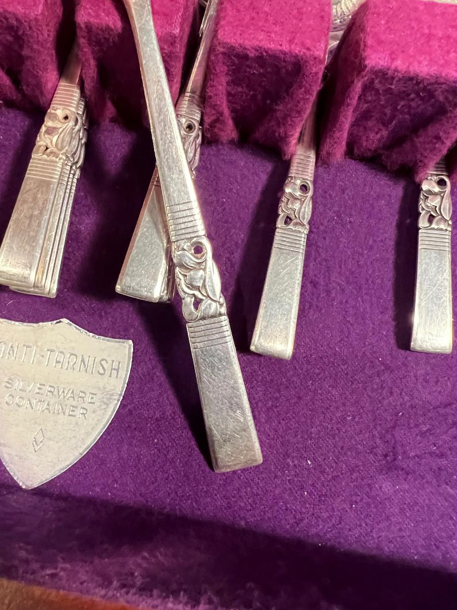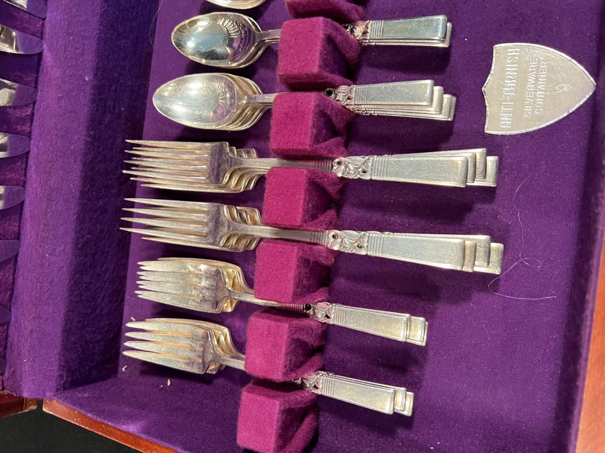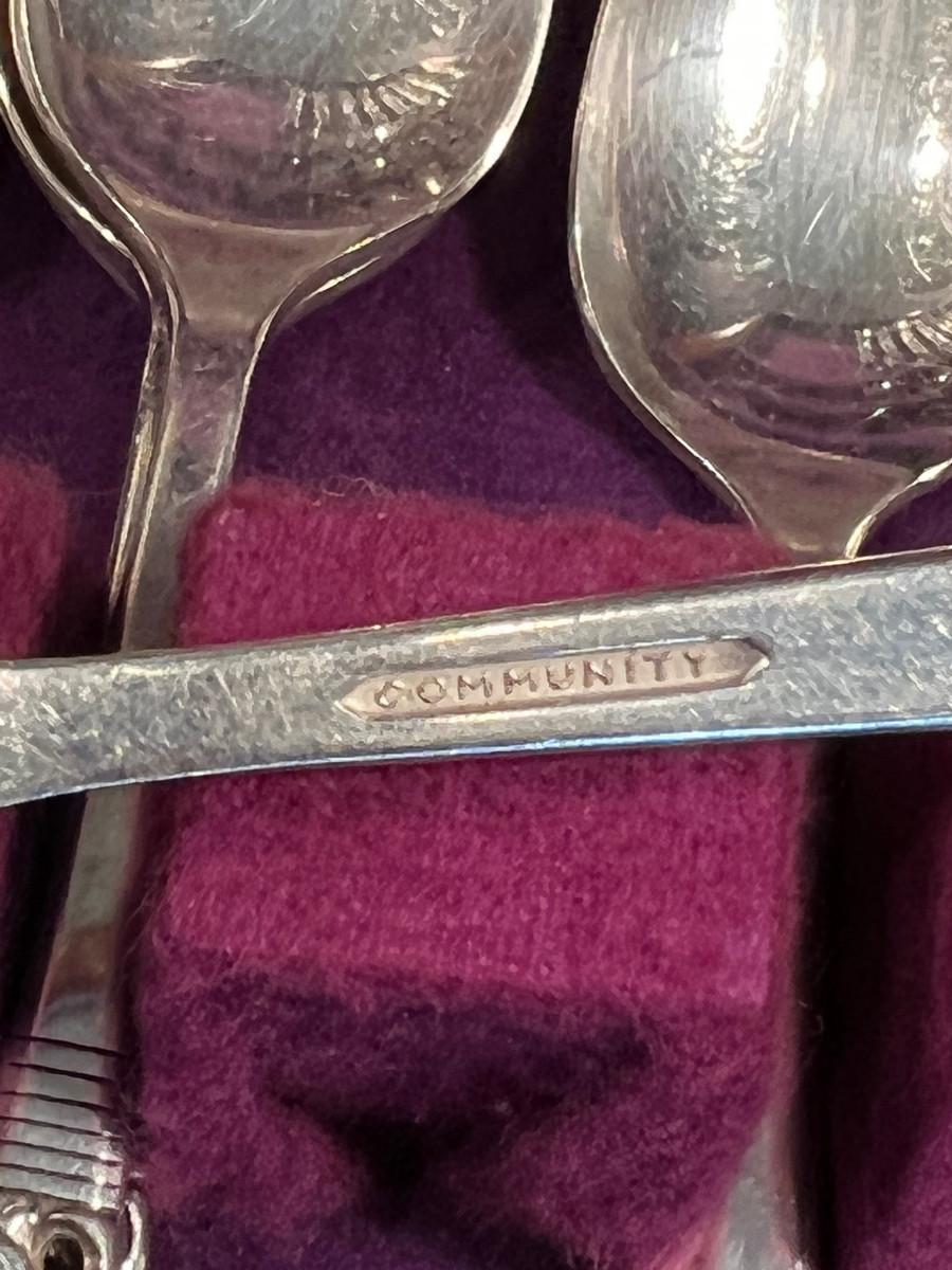 Appear mostly Complete 4 Piece Place Setting for 8 with some serving Spoons, silver plated.