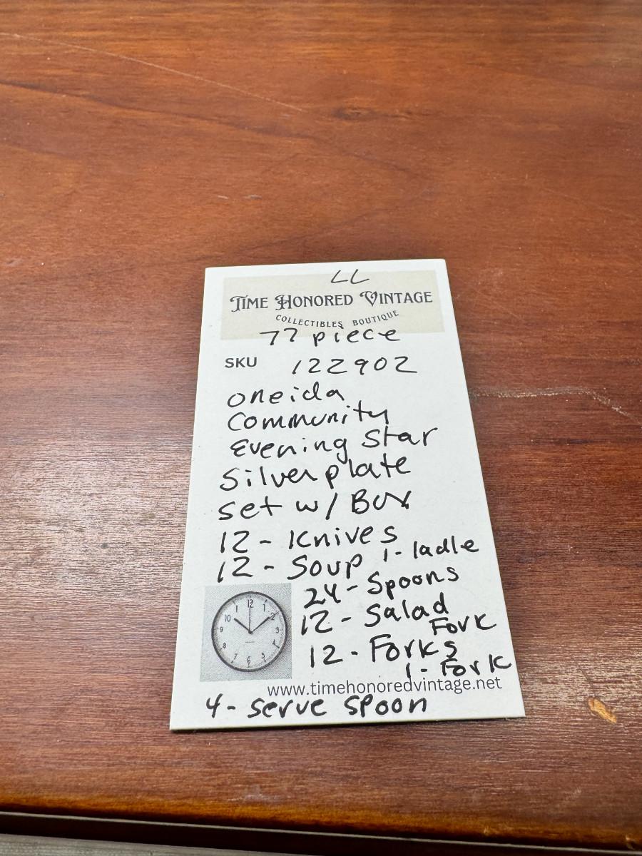 Oneida Community Evening Star 77 piece set with serving pieces in good condition. Very heavy with storage box , can be shipped.