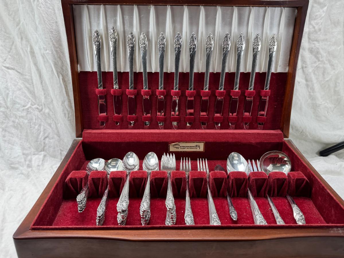 Community Silverware Silver plated in Original wooden non tarnish chest