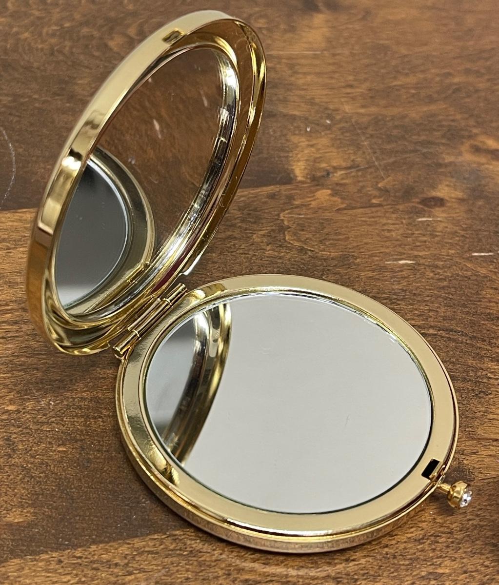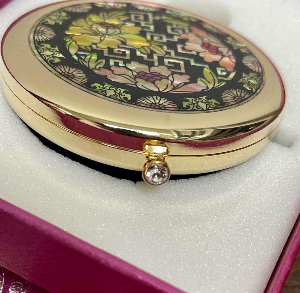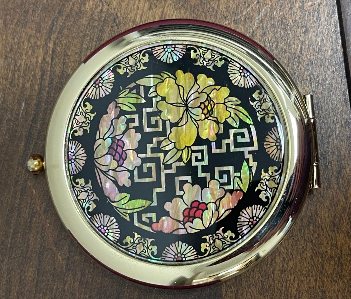 Inlaid Peony Mother of Pearl Magnifying Compact Mirror
