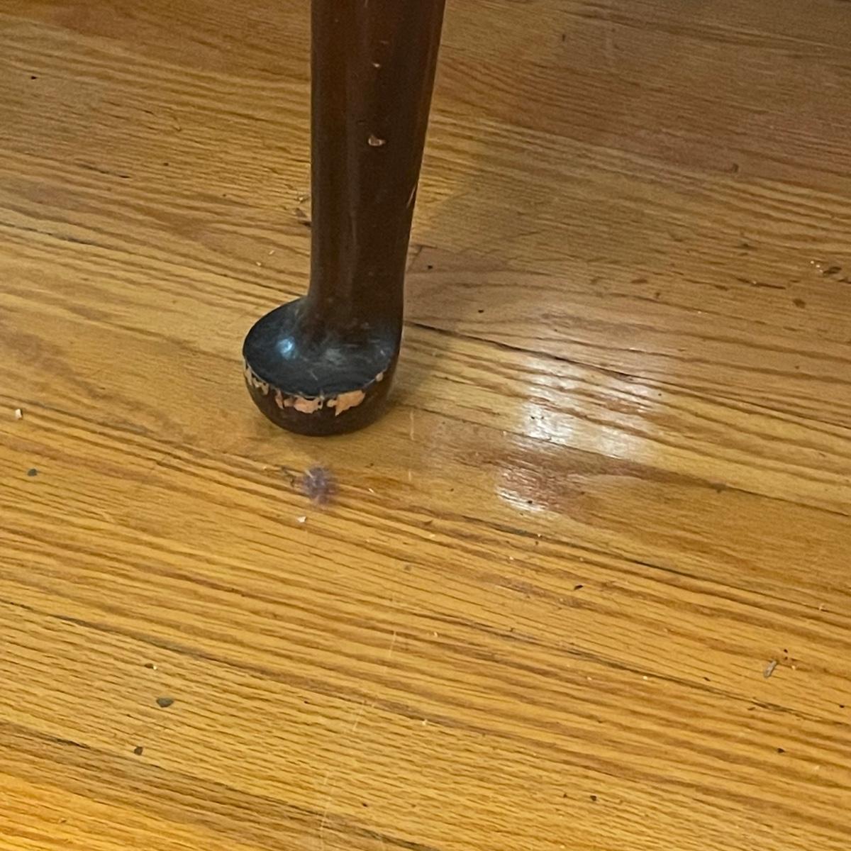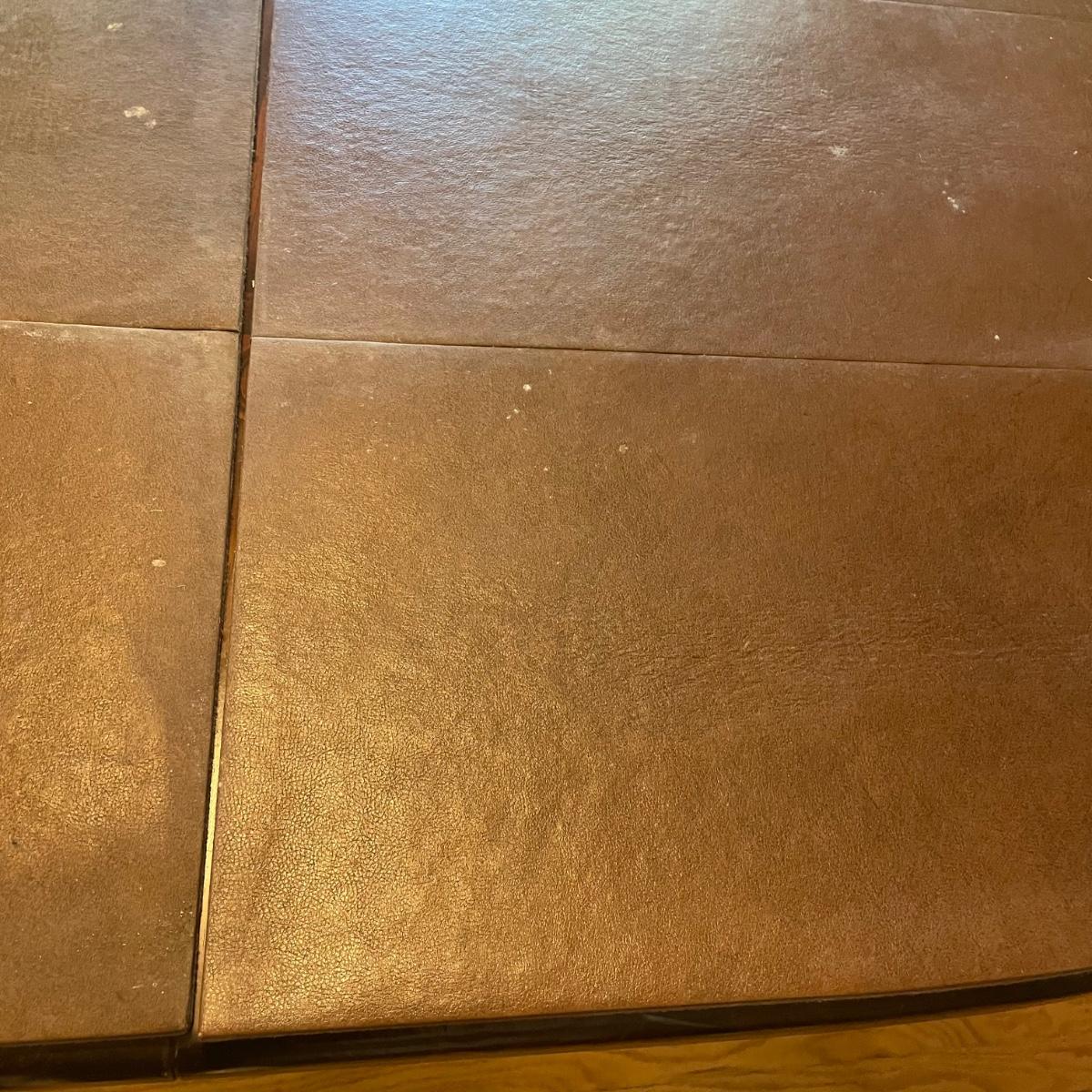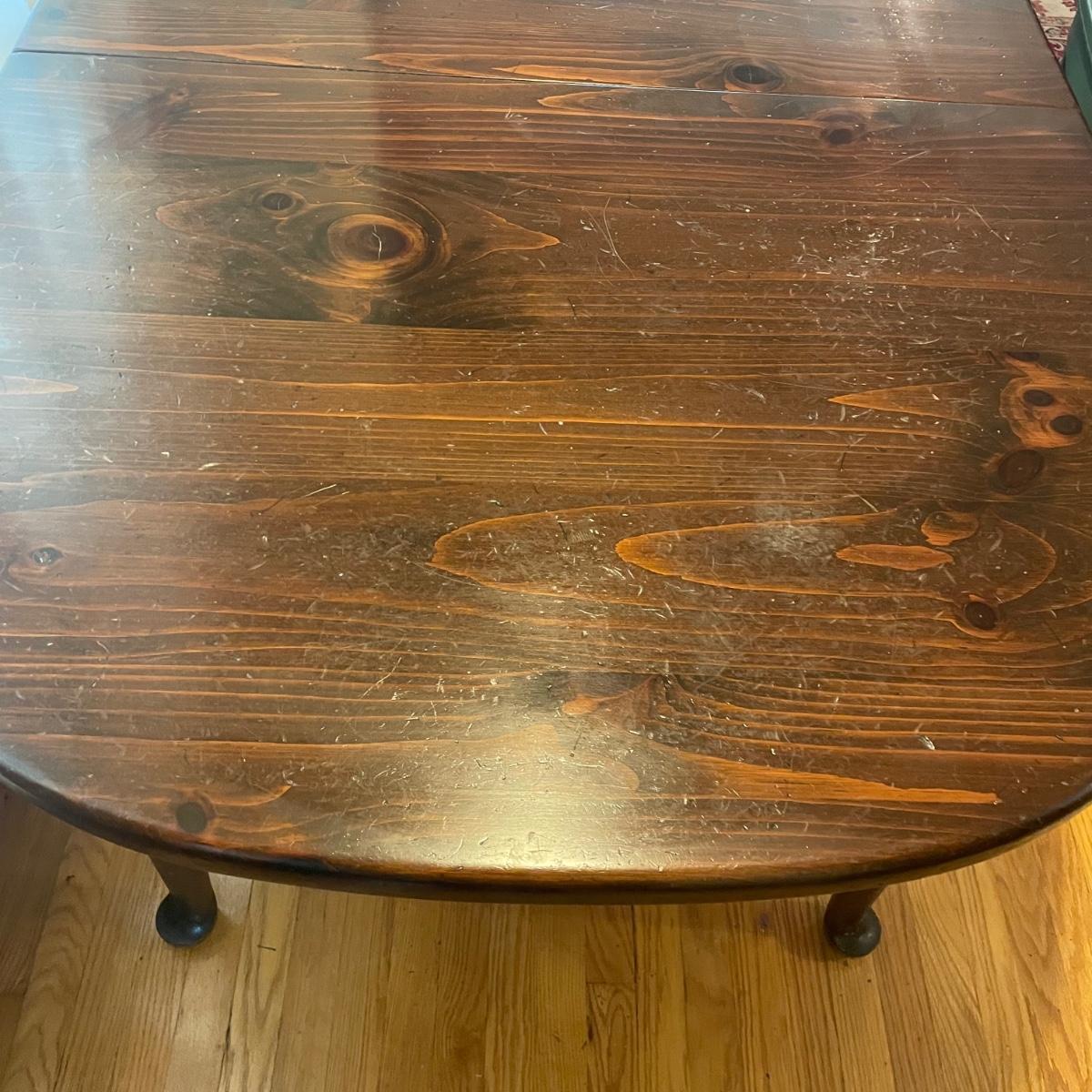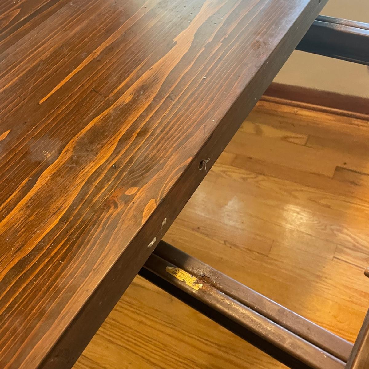 A sturdy quality wood dining table that goes from 60” to 96” long with the addition of its three 12” leaves. It’s 40” wide x 29” tall. The table has a dark stain. It is in good condition but does have some scuff marks, see images. The leaves install easily. Table has a protective sectional pad; it’s missing pads for 2 of the 3 leaves.