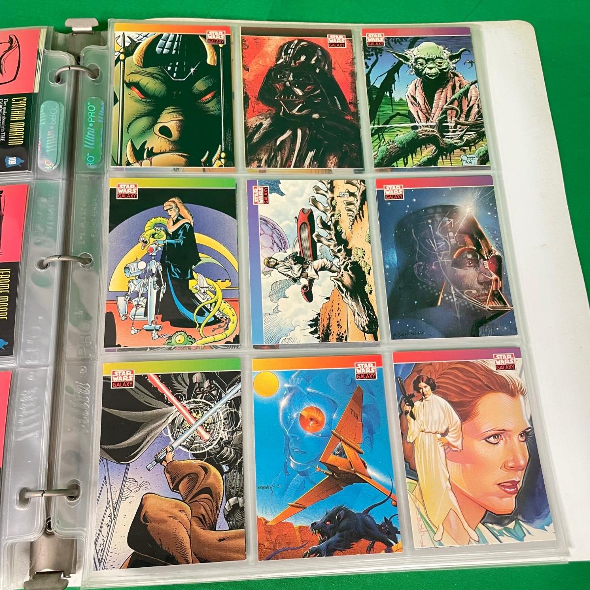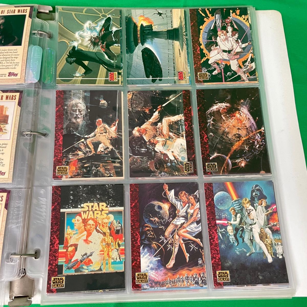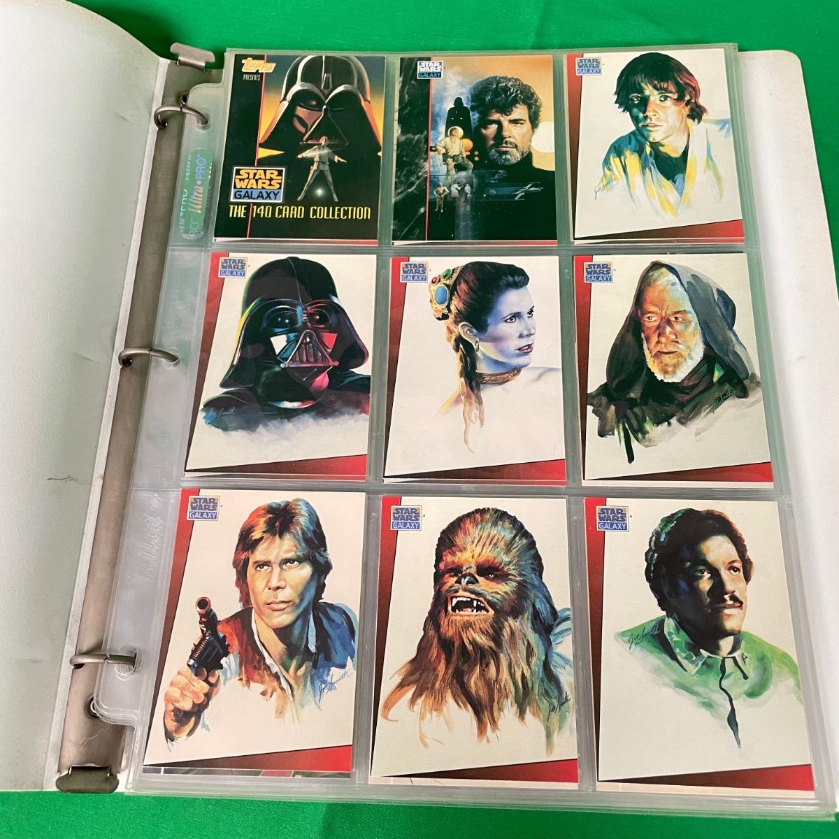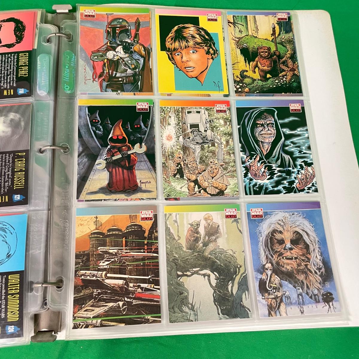 Lot appears to be a complete set of series one Star Wars Galaxy 1993 trading cards in an Empire Strikes Back binder. Cards are neatly in order from 1-140. See images. Items are sold as-is. No returns or refunds. Please bid accordingly.
