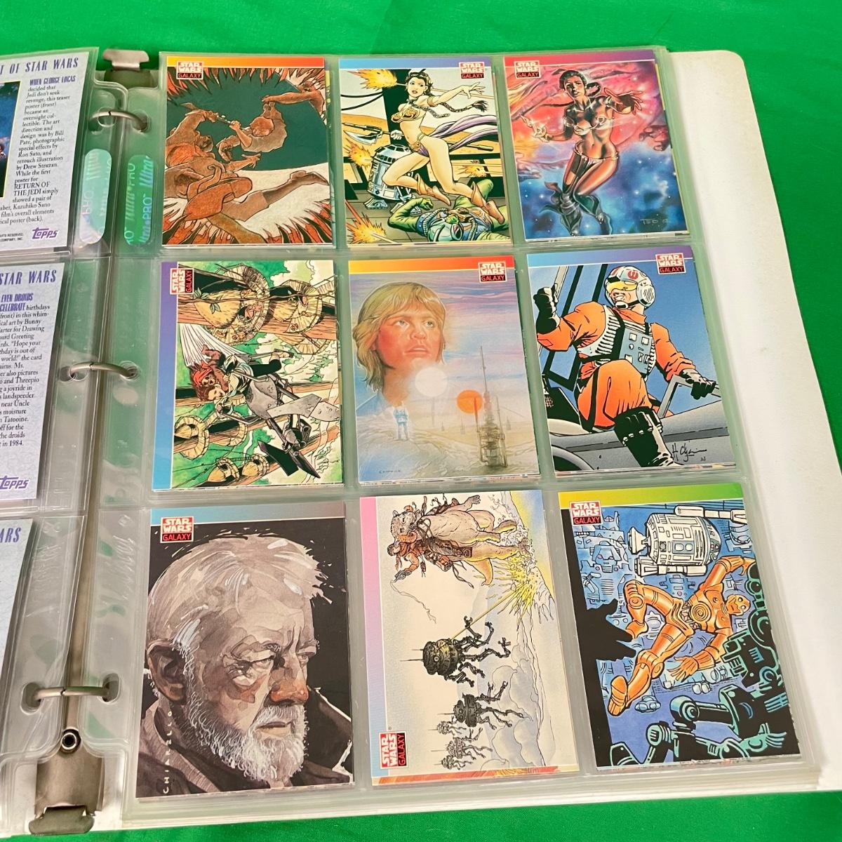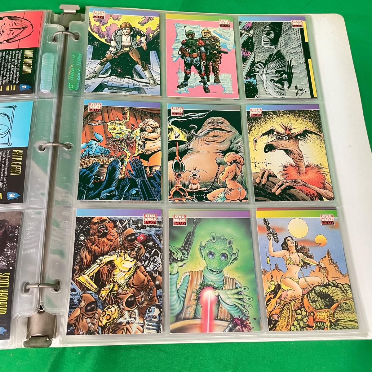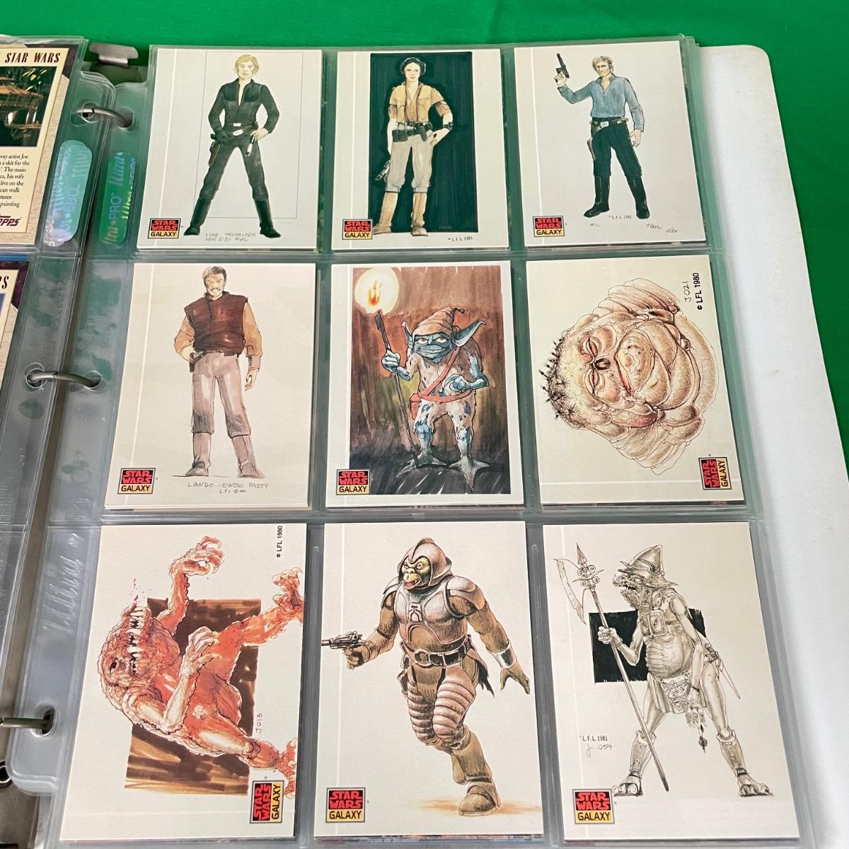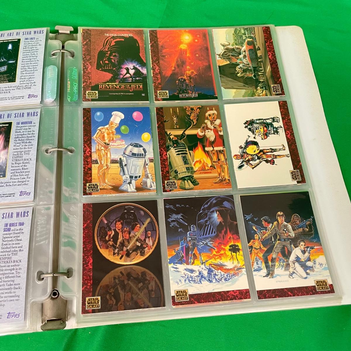 Lot appears to be a complete set of series one Star Wars Galaxy 1993 trading cards in an Empire Strikes Back binder. Cards are neatly in order from 1-140. See images. Items are sold as-is. No returns or refunds. Please bid accordingly.