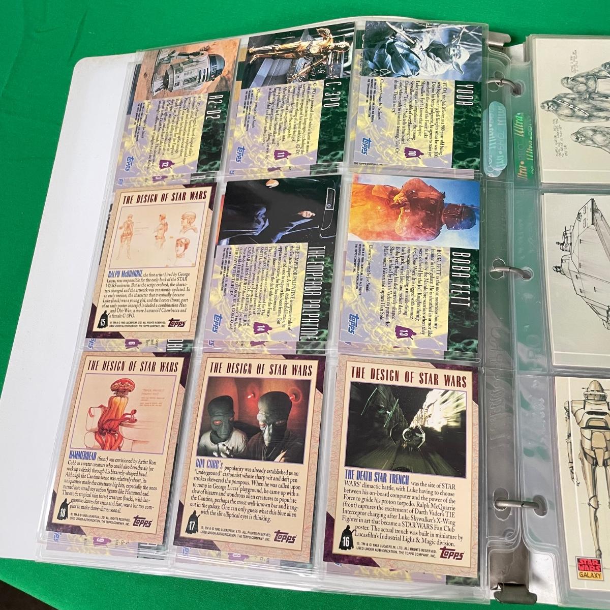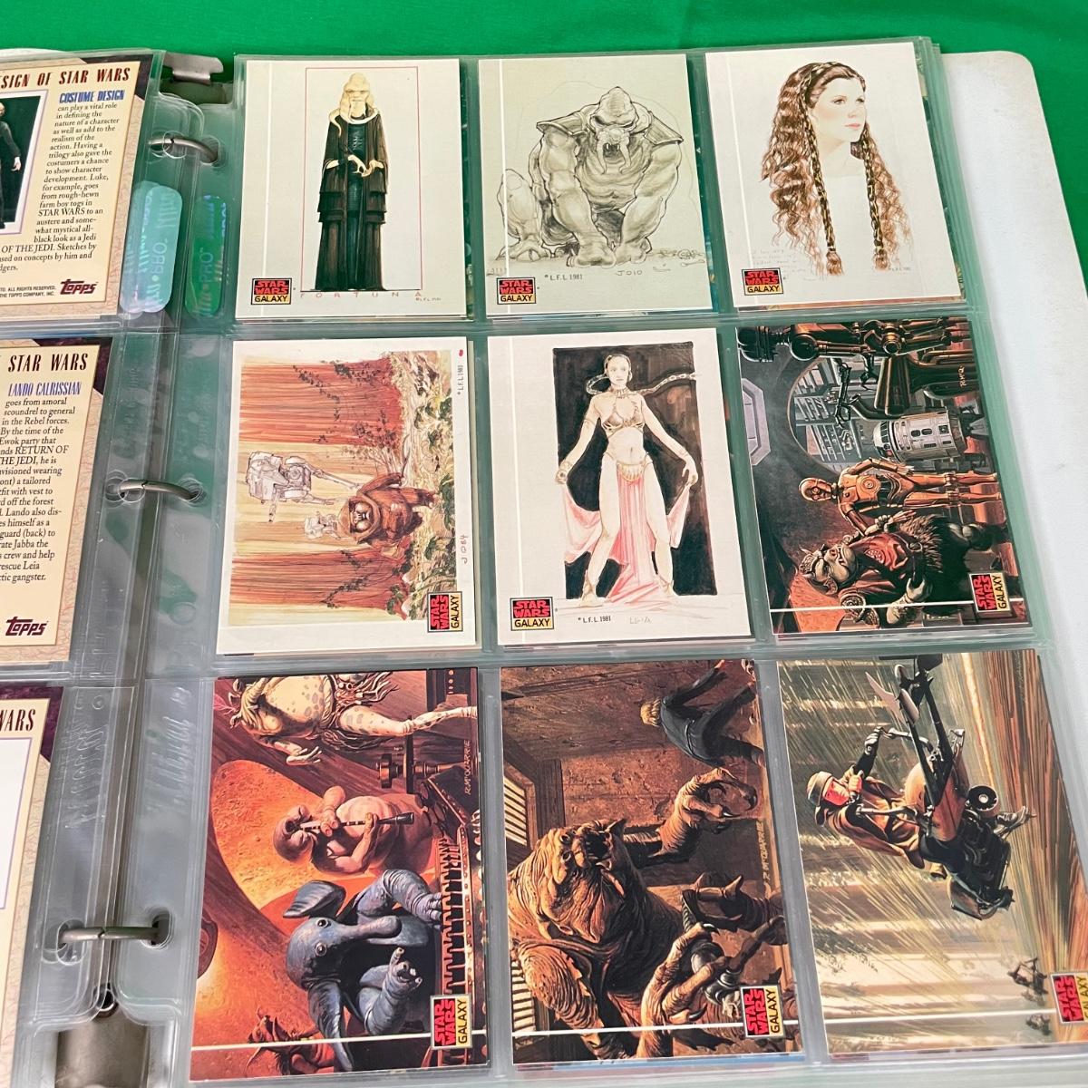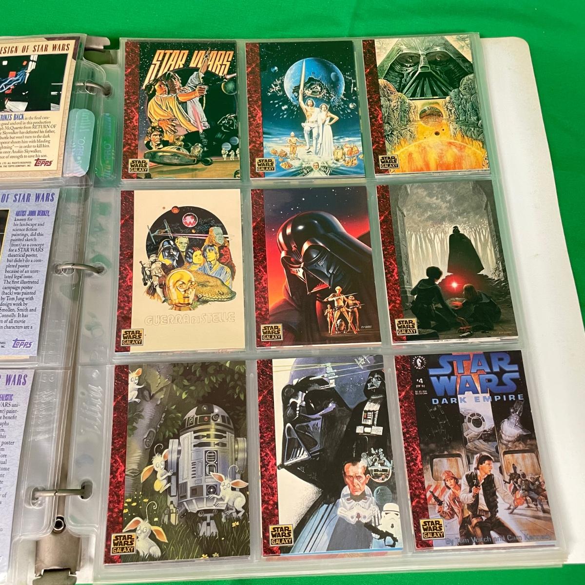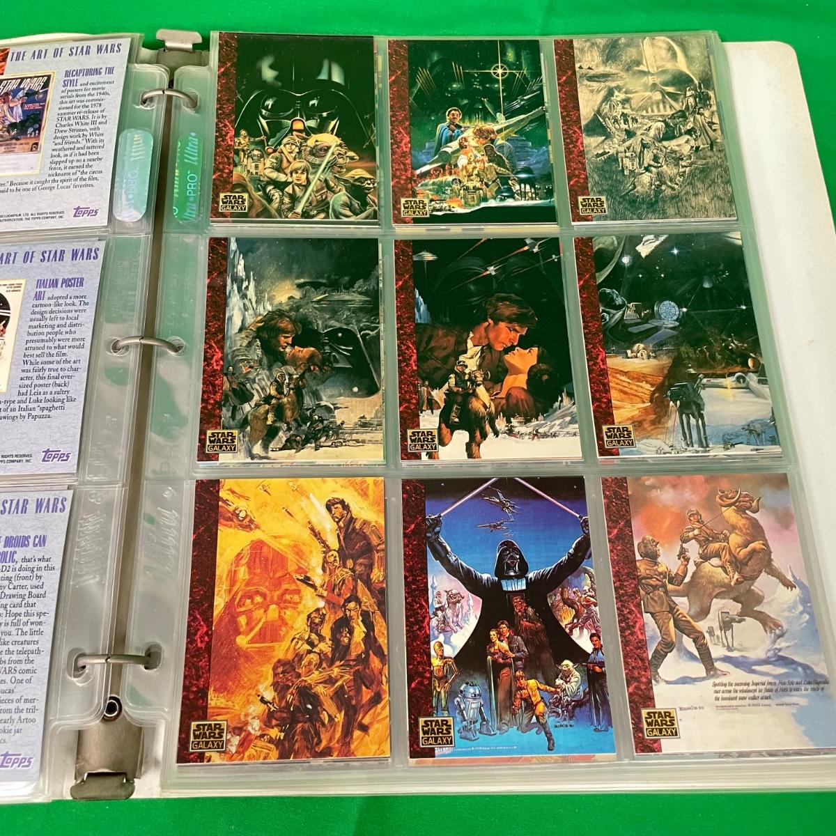 Lot appears to be a complete set of series one Star Wars Galaxy 1993 trading cards in an Empire Strikes Back binder. Cards are neatly in order from 1-140. See images. Items are sold as-is. No returns or refunds. Please bid accordingly.