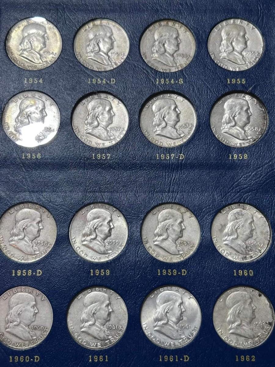 Complete Book Franklin 90 % silver half dollars Reserve set