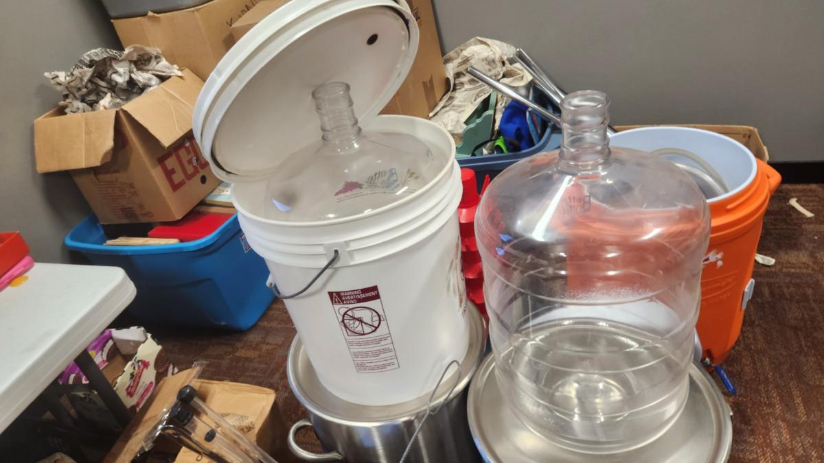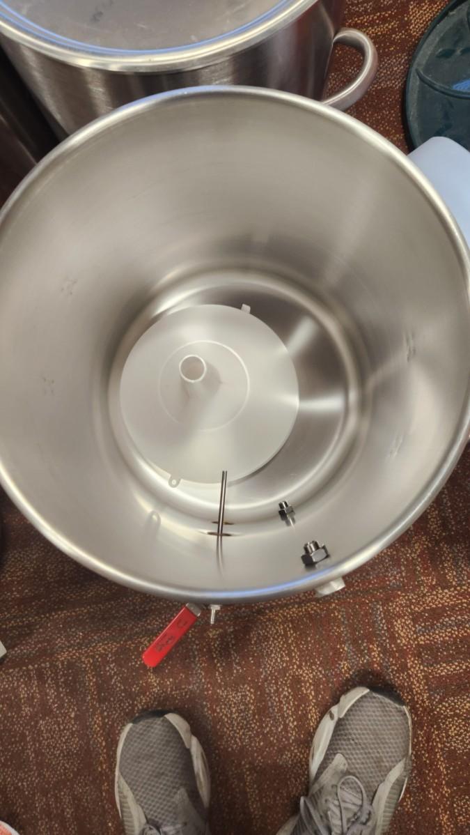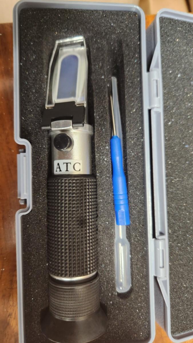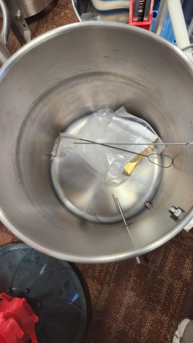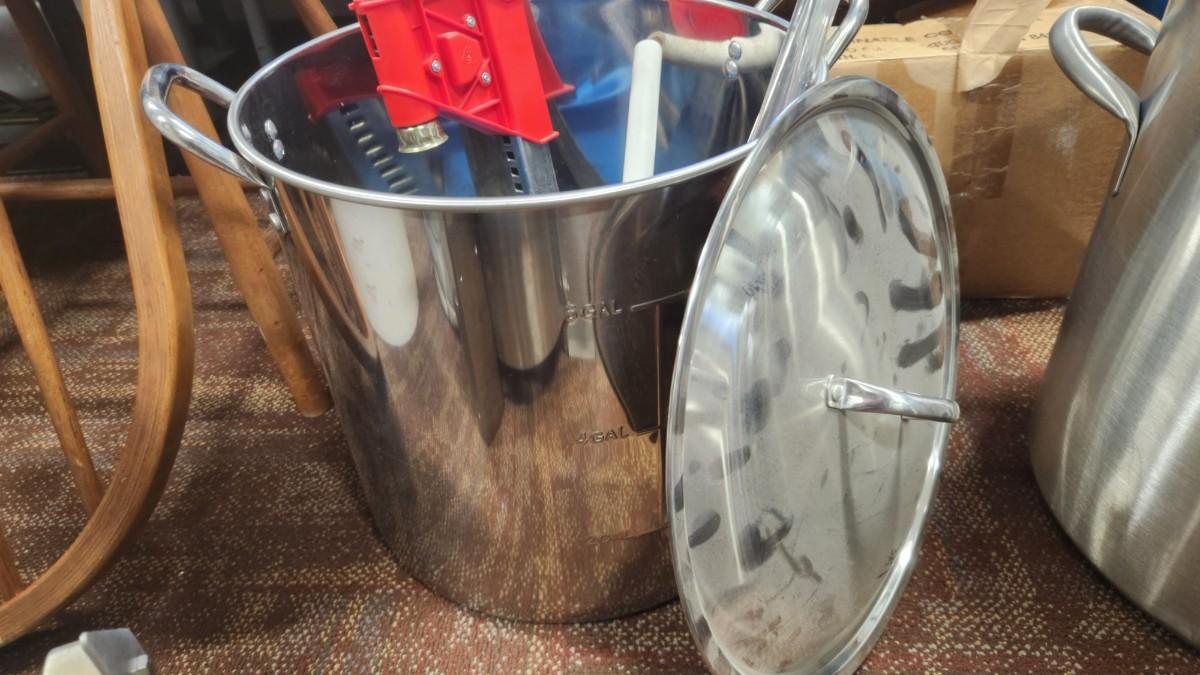 Burner and pots are made by Blichmann. Portable refractometer, cleaning brushes, thermometers, tubes, and copper pipe all included.