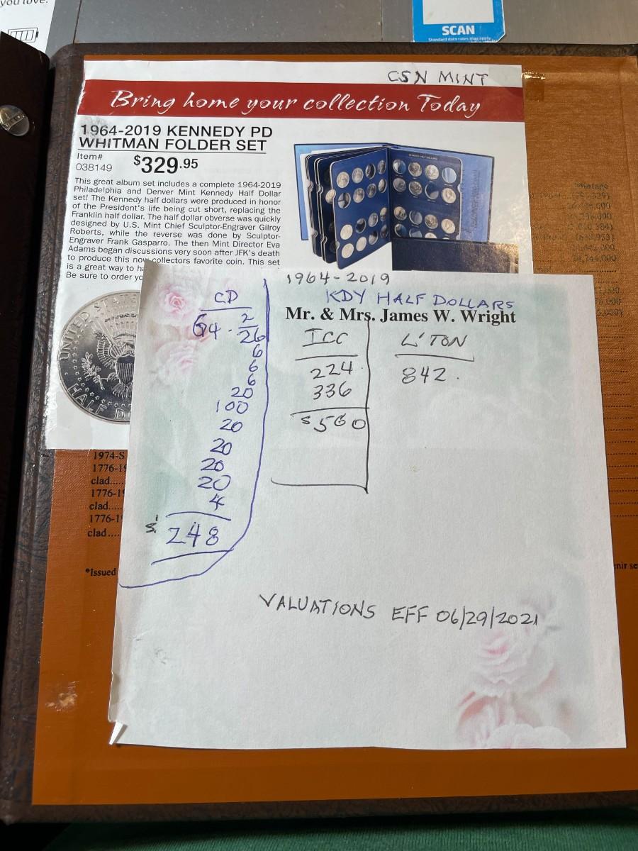 Complete Kennedy Half Dollar Set Uncirculated from 1964-2019 P & D Mintmarks in a Classic Dansco Album as Pictured. No Proof Coins. $15 DOMESTIC SHIPPING.