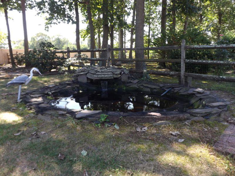 You dig it up, you take it! Includes all stones/rocks, filters, heater, netting, liner, and fish! It's a soft liner that you just dig a hole and lay it in and secure with rocks around it. Nice lichen and moss on rocks. **Please read Terms and Conditions before placing a bid. Pick up is Sunday, September 15, 2019 from 11am to 4pm and Tuesday, September 17 from 4pm-7pm in Sicklerville. All sales are final. All sales are as is, where is. Please review all photos. Any props included in photos are not included in listing. All measurements are approximate.