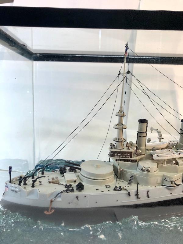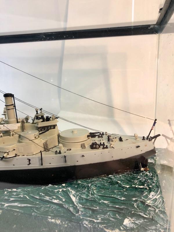 Homemade display box and 1 completed model ship. Unsure if there are any pieces missing and can’t testify to workmanship quality.. tank measures 10” x 20” x 13”. Shipping is possible for the buyer if they want to pay for cost of shipping and insurance