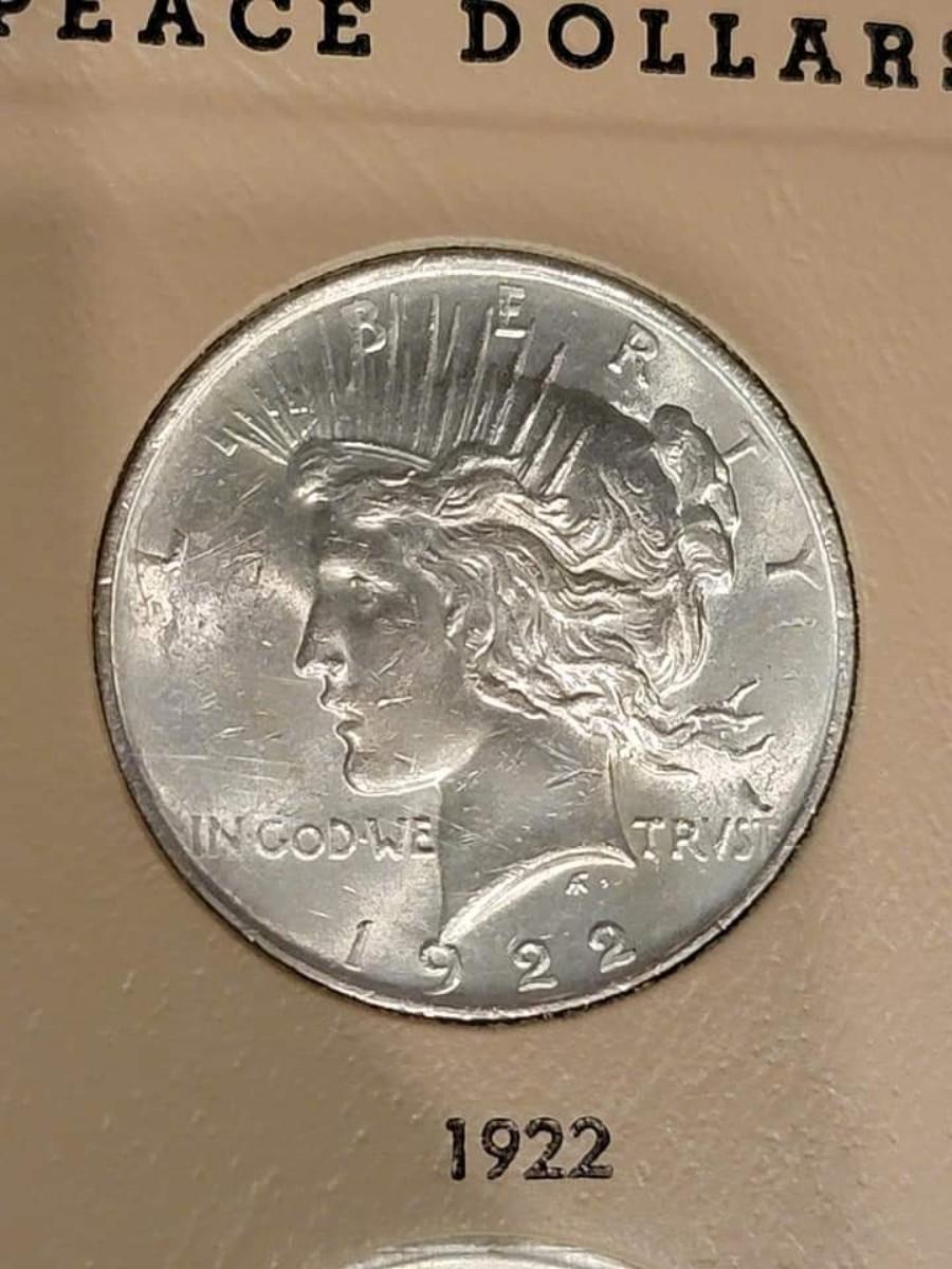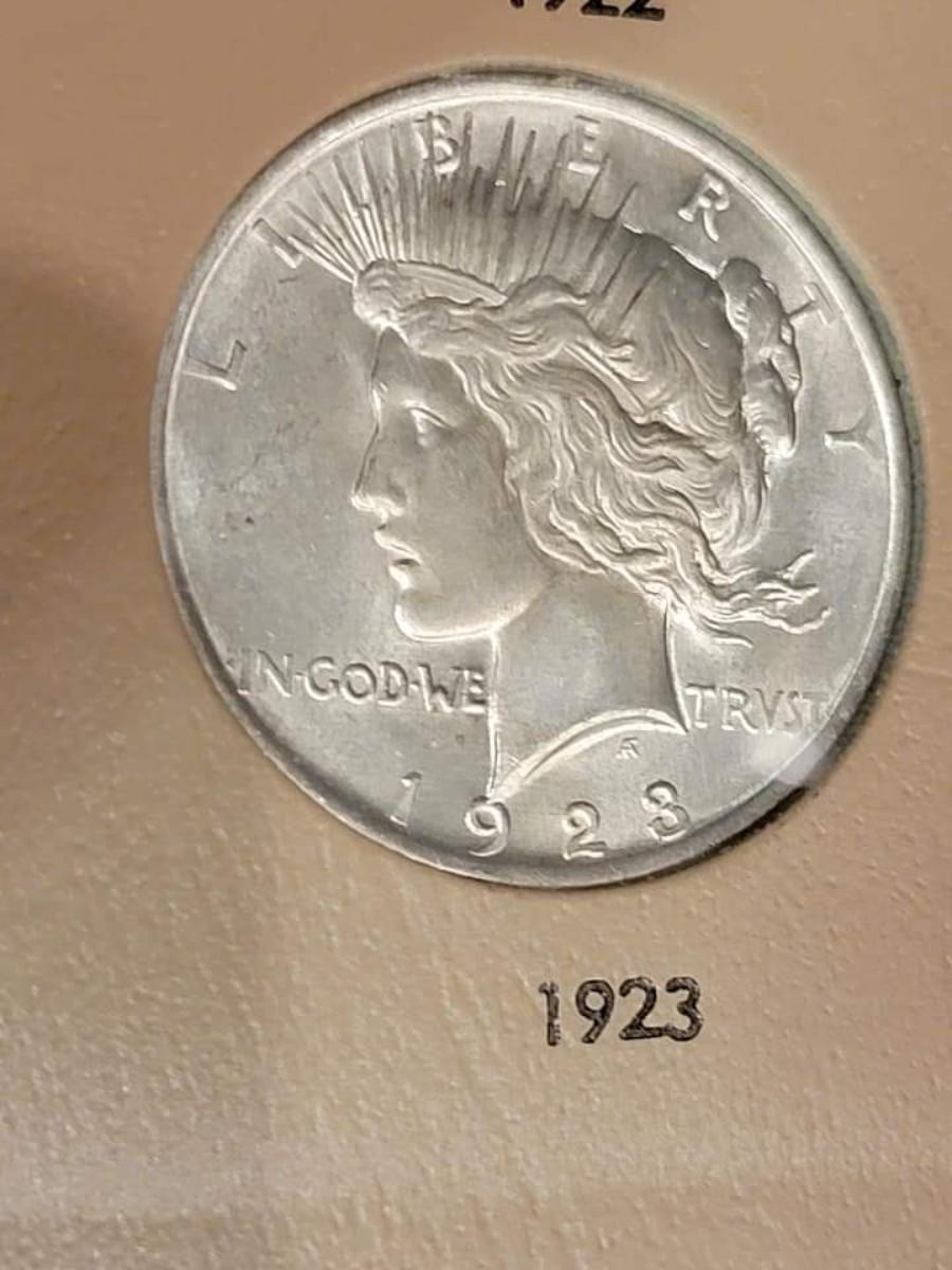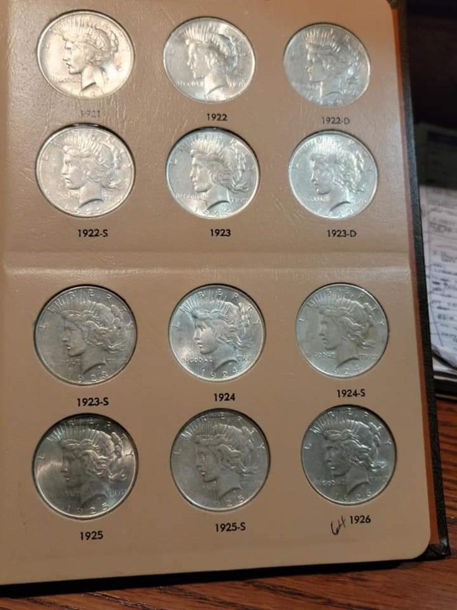 Complete peace dollar book including Rare 1921 thru 1935 reserve set