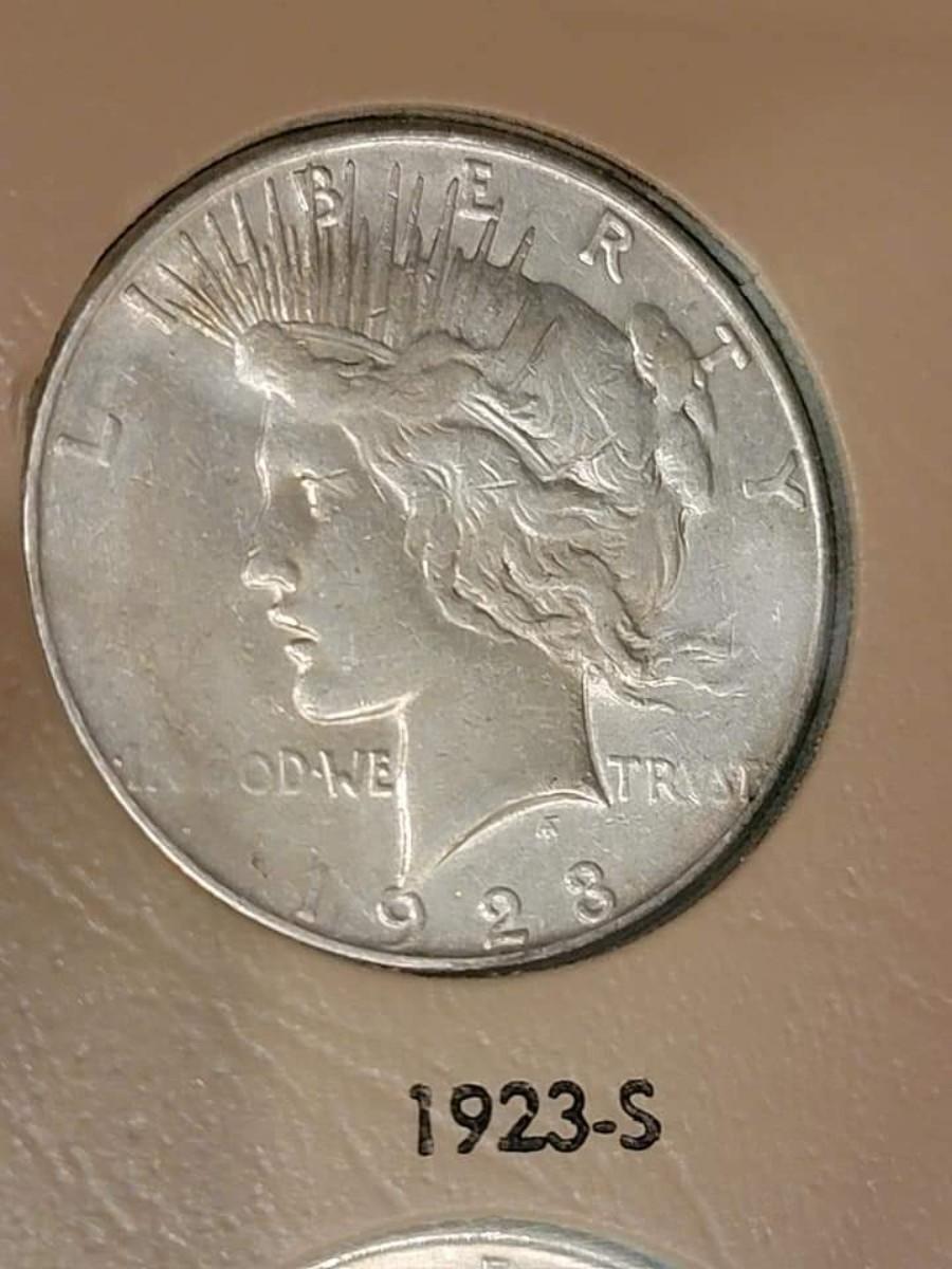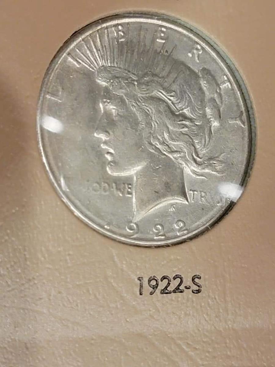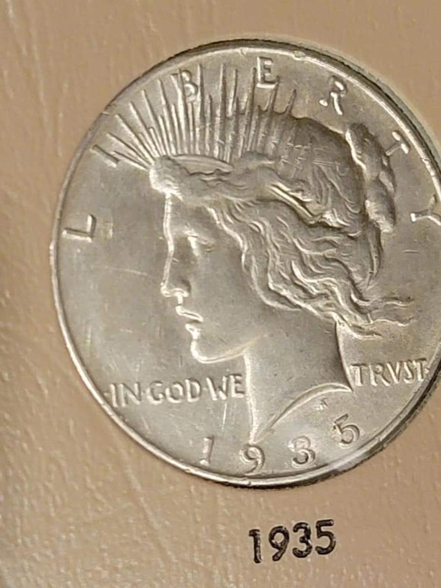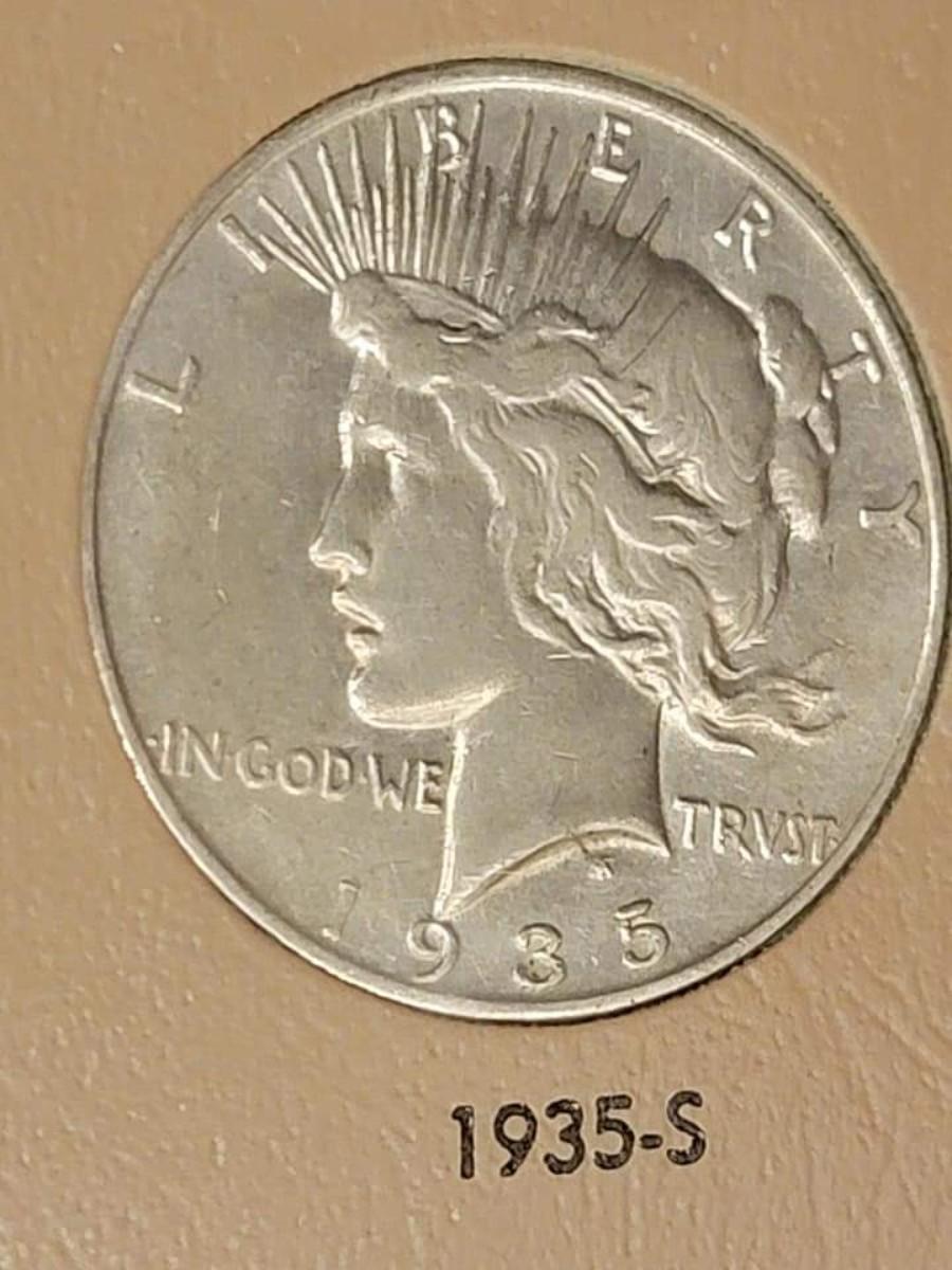 Complete peace dollar book including Rare 1921 thru 1935 reserve set